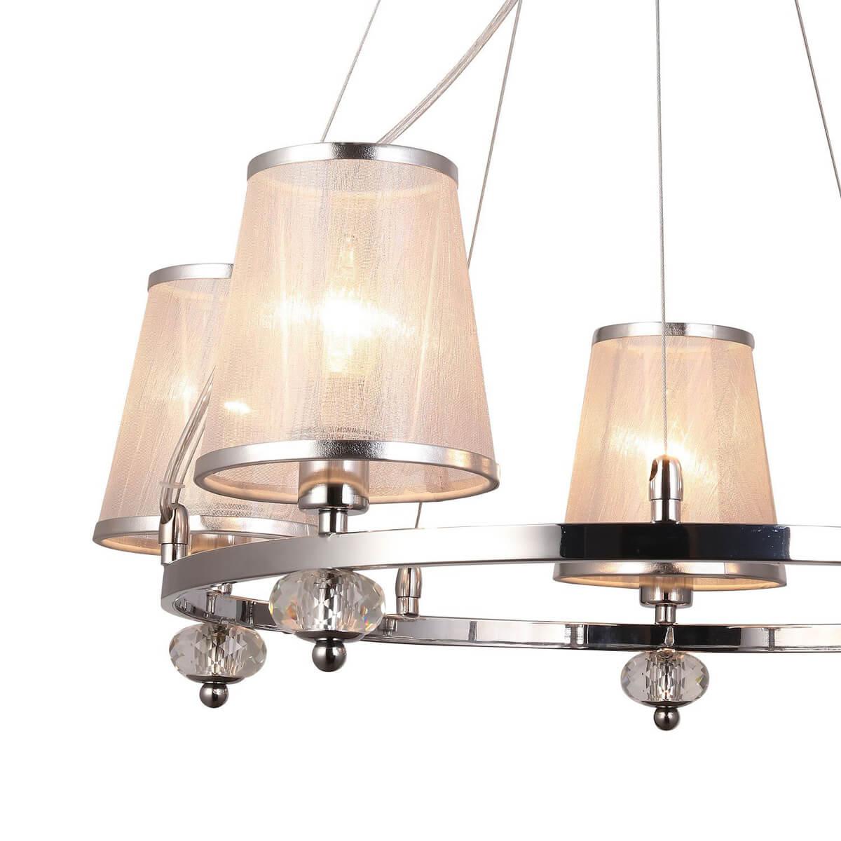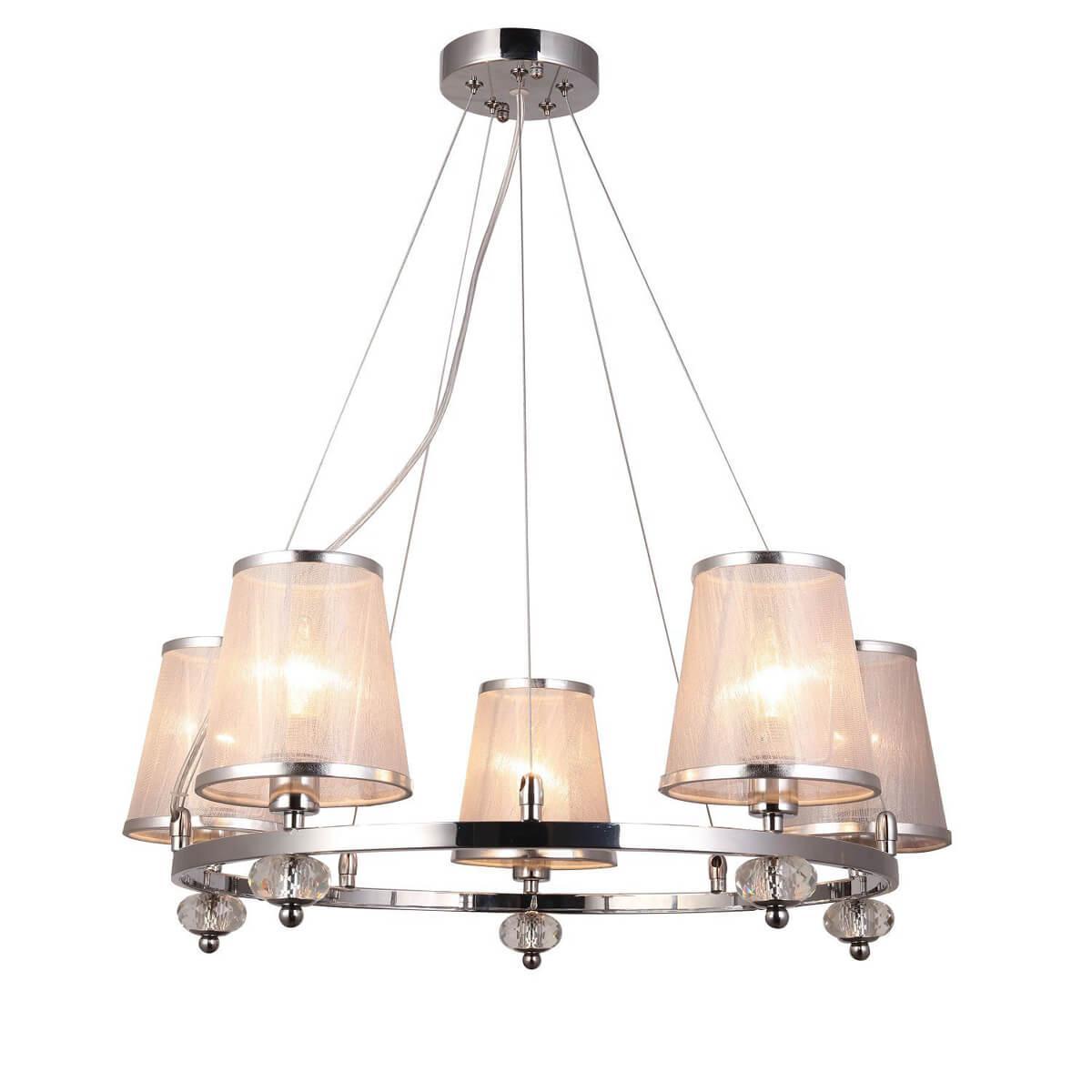Подвесная люстра F-Promo Argus 2542-5P - это элегантное и стильное освещение для вашего интерьера. Произведенная в Германии, она отличается высоким качеством и надежностью.Эта подвесная люстра из коллекции Argus имеет пять лампочек с цоколем E14 и общей мощностью 200 Вт. Высота изделия составляет 240 мм, а диаметр - 620 мм. Материал плафона выполнен из органзы, а основание из металла, окрашенного в серебристый цвет.