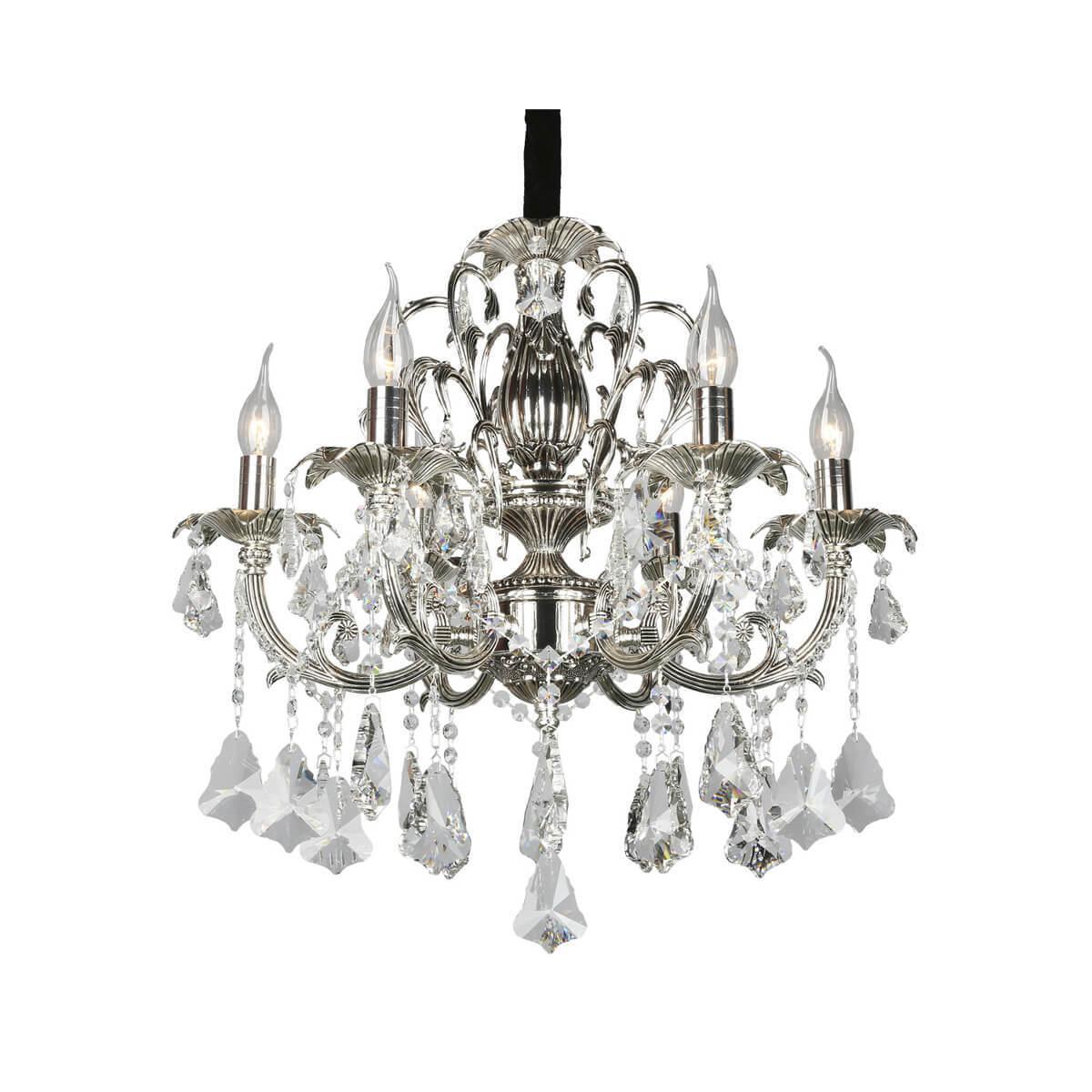 Подвесная люстра Omnilux OML-77713-06 - это элегантное и изысканное освещение для гостиной в классическом стиле. Бренд Omnilux известен своим качеством и надежностью, поэтому покупая эту люстру, вы можете быть уверены в ее долговечности.Люстра изготовлена из металла с отделкой под серебро, что придает ей изысканный вид. Хрустальные элементы добавляют блеска и роскоши, делая люстру Omnilux OML-77713-06 настоящим украшением интерьера.