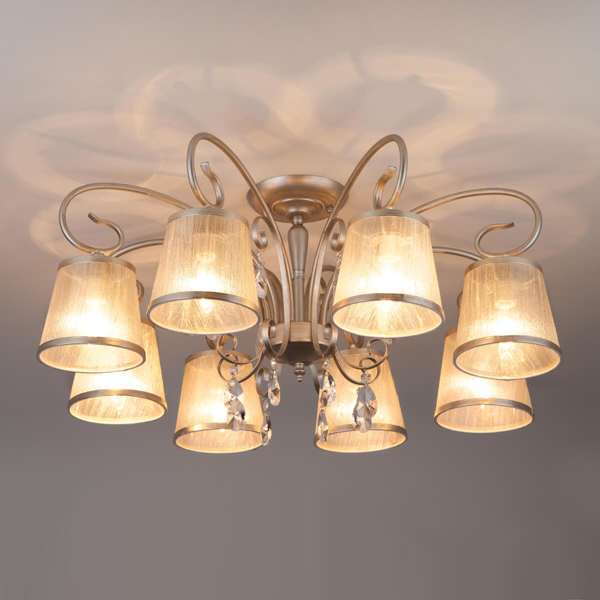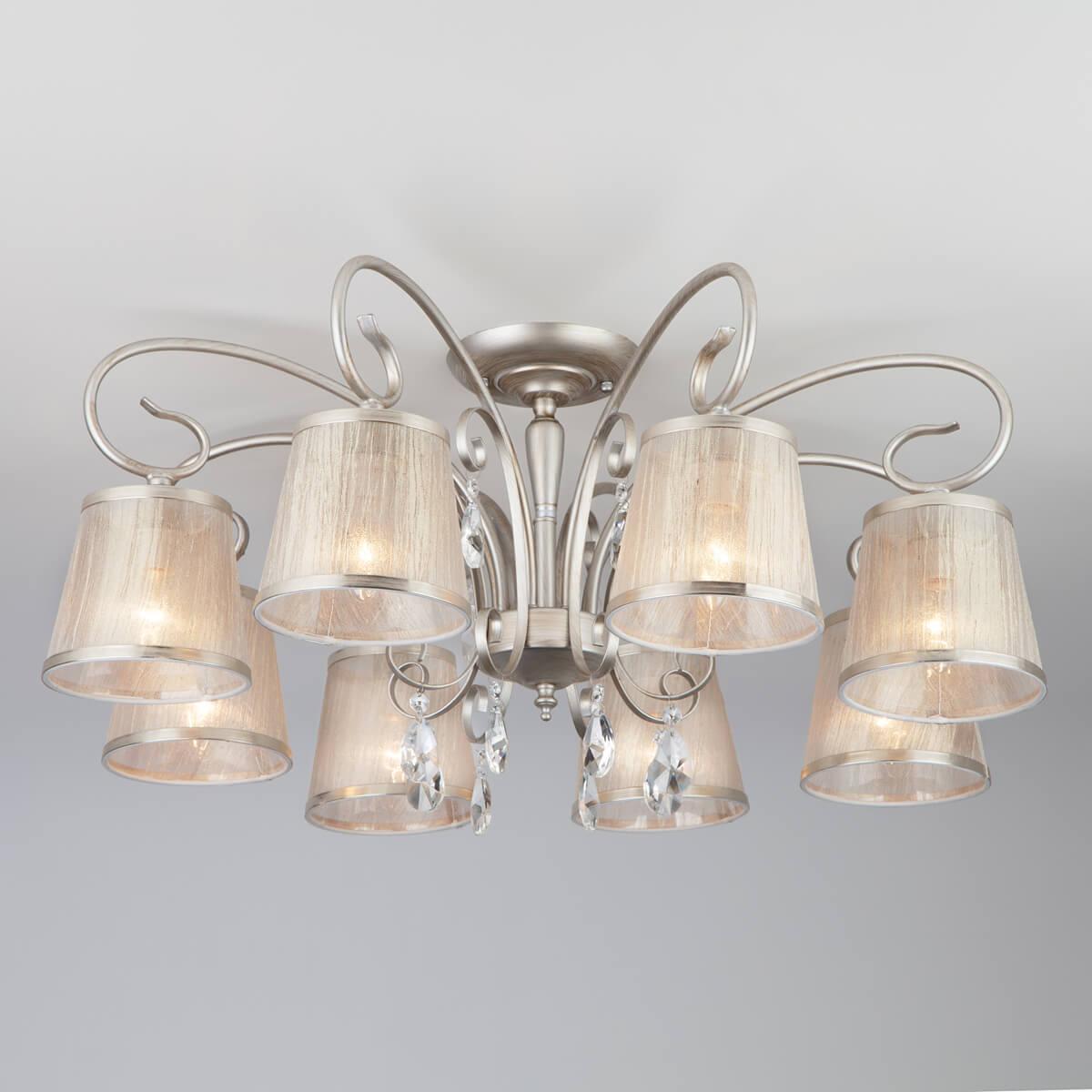 Потолочная люстра Eurosvet 60065/8 серебро из коллекции Liona представляет собой элегантное освещение для гостиной в стиле неоклассики. Артикул 60065/8 серебро отличается высоким качеством и изысканным дизайном, который подчеркнет статус и утонченность интерьера.Люстра имеет восемь плафонов из ткани в форме конусов, окрашенных в серебристый оттенок. Основание из металла также выполнено в серебристой гамме, что придает изделию благородный вид. Диаметр люстры составляет 740 мм, а высота - 350 мм, что позволяет ей эффективно освещать пространство и при этом не занимать много места на потолке.