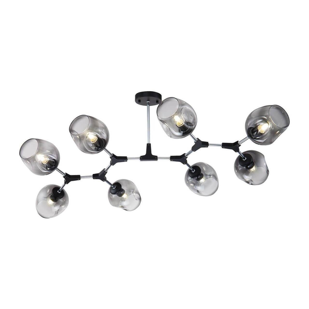Потолочная люстра Freya Desi FR5006CL-08B - это элегантное и стильное освещение для гостиной, произведенное в Германии под брендом Freya. Люстра из коллекции Desi имеет высокое качество исполнения и привлекательный дизайн, который подойдет для интерьера в стиле хай-тек.Этот светильник оснащен восемью лампами с цоколем E27 и общей мощностью 480 Вт. Плафоны и абажуры выполнены из стекла в дымчатом цвете, что придает освещению особую атмосферу. Основание люстры изготовлено из металла и окрашено в черный цвет, что придает ему современный и изысканный вид.