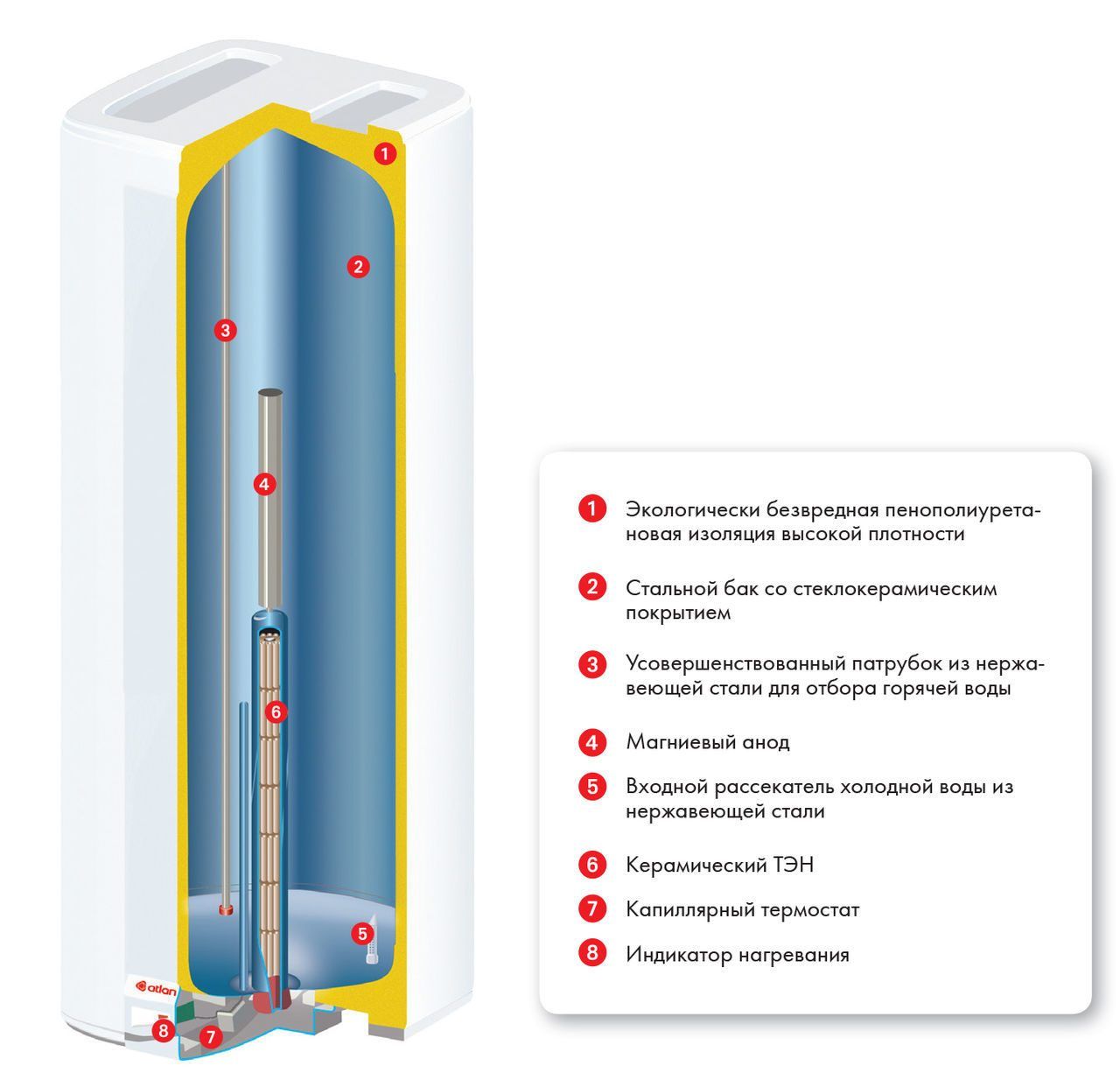 Выполненные в форме призмы (куба), с уникальным премиальным дизайном водонагреватели идеально вписываются в любой интерьер - идеально подходят для условий ограниченного пространства или установки в закрытых шкафчиках или нишах. Steatite technology - "сухой" стеатитовый нагревательный элемент (ТЭН) находится в защитной колбе, не контактирует с водой. Стальной внутренний бак и колба ТЭН толщиной 1,5 мм имеют алмазное покрытие стеклокерамикой с содержанием циркония "Dimand quality" - 100% защита от электрохимической коррозии и дополнительные антибактериальные свойства. Пенополиуретановая теплоизоляция высокой плотности гарантирует низкие потери тепла, длительный период сохраняет воду горячей. Сверхточный капиллярный термостат - 15% экономия электроэнергии. Внешний регулятор температуры позволяет легко задать температуру нагрева воды. Идеален для жесткой воды, наличие магниевого анода. Автоматическое отключение при перегреве. IP 24 - полное соответствие Европейским стандартам электрической безопасности.Сертификаты