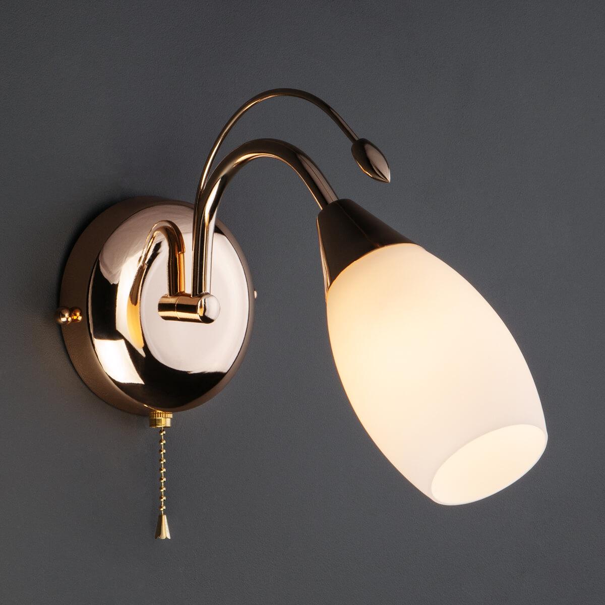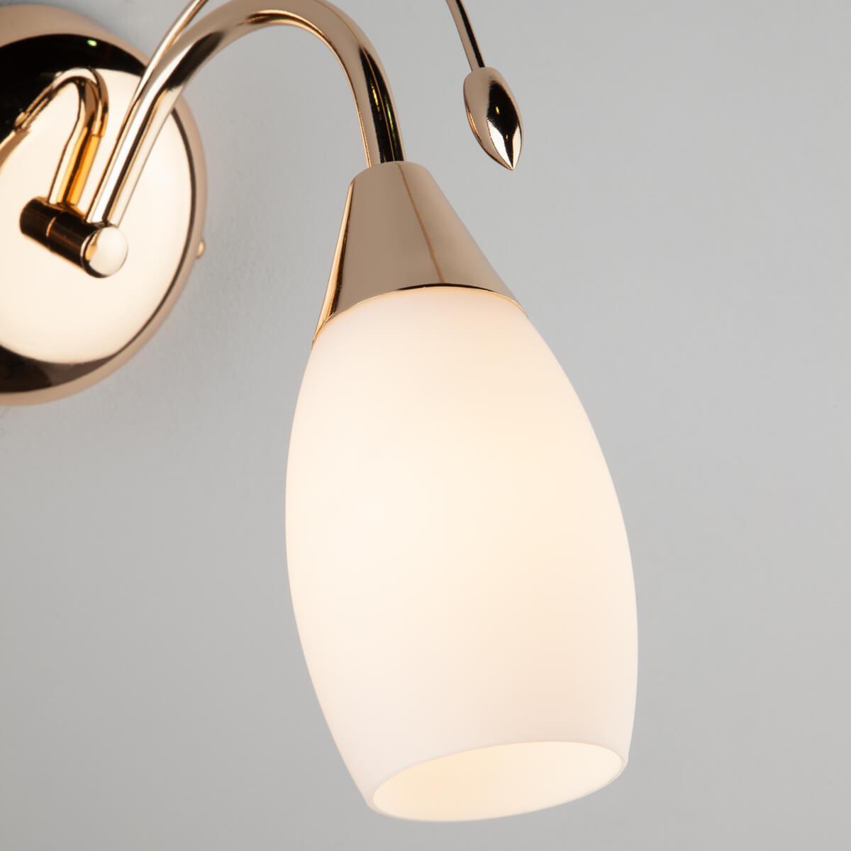 Бра Eurosvet 22080/1 золото в стиле флористика, имеет гарантию производителя 12 месяцев. Материал арматуры стекло, материал плафонов стекло. Основной цвет белый, цвет плафонов белый.Сертификаты