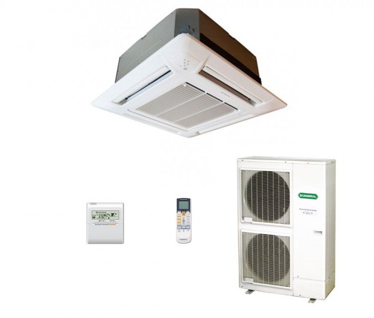 Тип внутреннего блока кассетный, что позволяет равномерно распределять воздушный поток по всему помещению. Инверторный привод обеспечивает плавное регулирование мощности и поддержание заданной температуры без резких перепадов.
