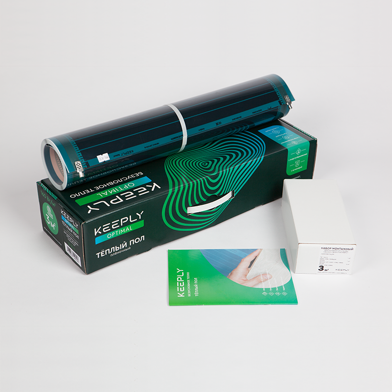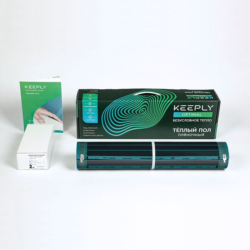 Комплект инфракрасного пленочного теплого пола KEEPLY OPTIMAL с удельной мощностью 160 Вт/м2 отлично подойдет для обогрева поверхности различных типов напольных покрытий (паркетная доска, ламинат, ковролин, линолеум), а также в качестве основного либо дополнительного источника тепла в теплых помещениях.