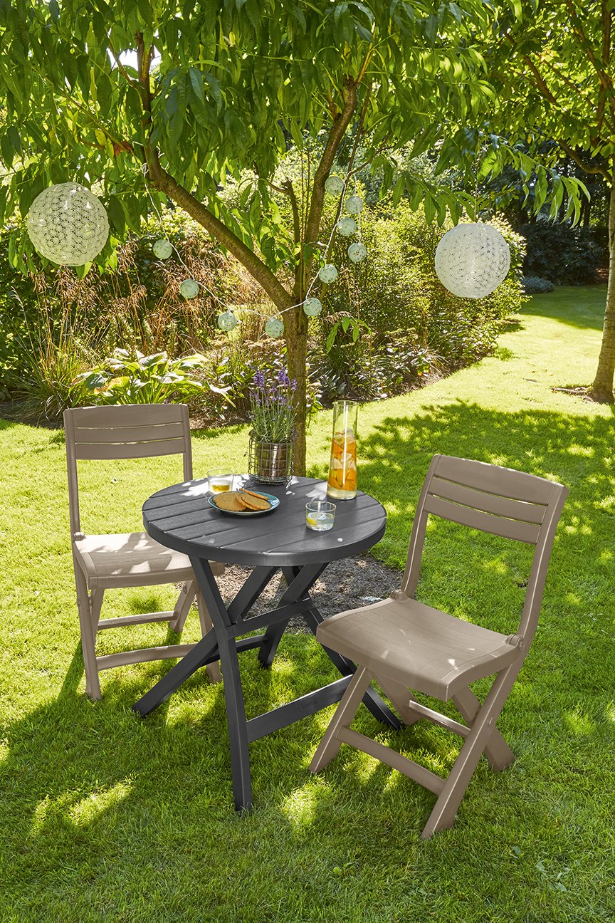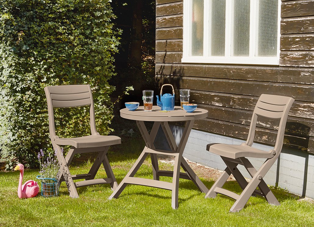 Компактный складной балконный набор Джаз выполнен в стиле, напоминающем оформление итальянских кафе. Два современной формы стула и круглый столик, вдохновением для создания которых послужила натуральная фактура древесины, гарантируют комфортный отдых. Комплект создан для тех, кто планирует на небольшом пространстве обустроить уголок для отдыха с возможностью поесть на свежем воздухе. Изделия отличаются прочностью и устойчивостью к воздействию внешних факторов, а также УФ-излучения.