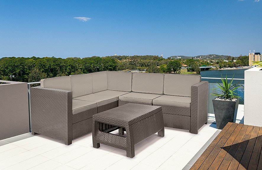 Угловой комплект «Прованс» производства Keter - прекрасное дизайнерское решение для размещения на веранде, лоджии, террасе, а также хороший вариант для зоны отдыха у бассейна. В набор входит большой комфортный диван и квадратный столик.Стильный современный внешний вид Provence Set с имитацией оригинального плетения под искусственный ротанг позволит комплекту гармонично смотреться с любым комплектом мебели для сада и отдыха. Благодаря высокопрочному полипропилену, из которого изготовлен гарнитур, мебель устойчива к любым погодным воздействиям и ультрафиолетовым излучениям.