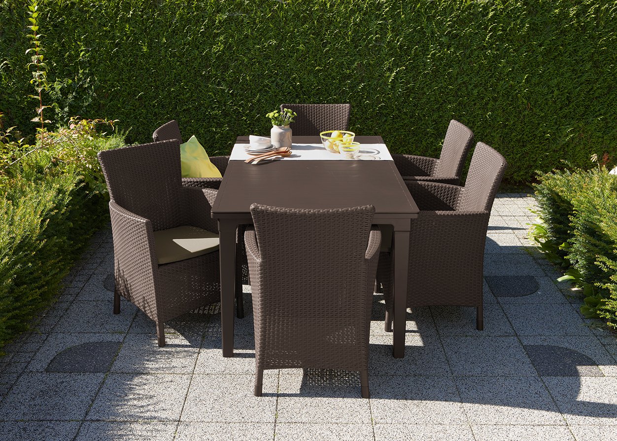 Iowa - это элегантное и комфортное садовое кресло, предлагаемое в комплекте с подушкой. Широкая гамма цветов и оригинальная, подобная ротанговой, фактура поверхности придется по вкусу даже самым требовательным пользователям. Изготовлено из стойкой к воздействию УФ-излучения и погодных условий высококачественной пластмассы. Очень просто собирается и легко чистится.