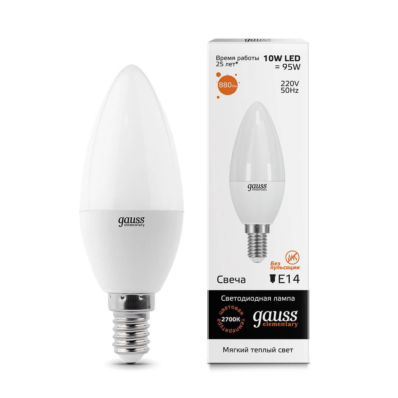 Лампа светодиодная Gauss E14 10W 3000K матовая 33110