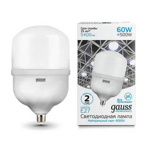 Лампа светодиодная Gauss E27 60W 4000K матовая 63226