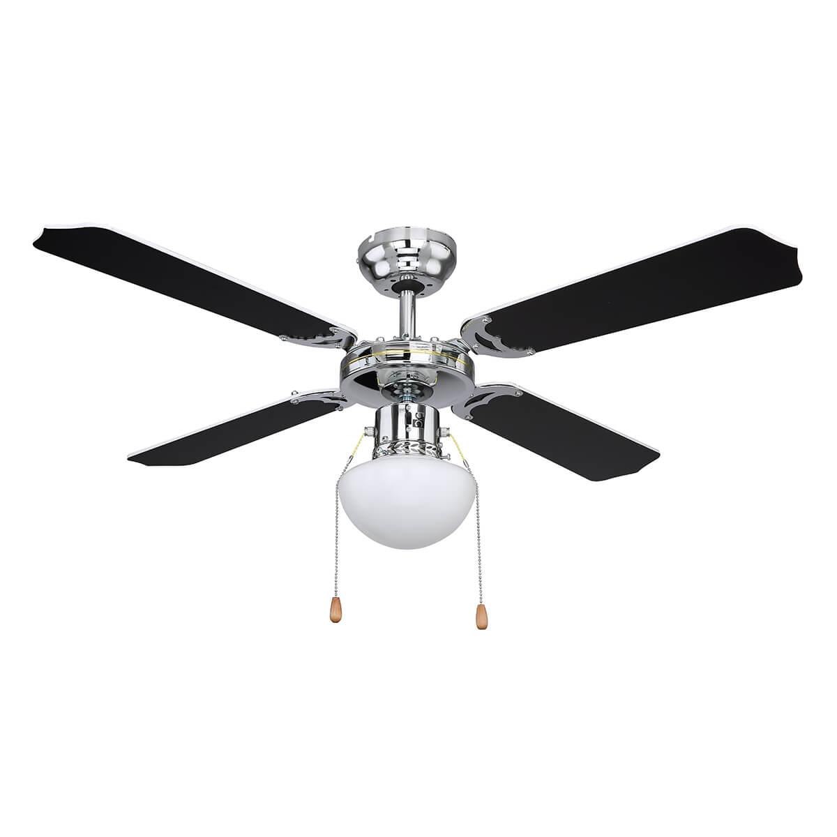 Люстра-вентилятор Globo Champion 0309CSW - это элегантное и стильное освещение для современного интерьера. Произведенная в Австрии, она сочетает в себе функциональность вентилятора и изысканный дизайн люстры.Этот светильник имеет один цоколь E27, что позволяет использовать лампочки мощностью до 60 Вт. Высота люстры составляет 415 мм, диаметр - 1066 мм. Плафон из стекла окрашен в черный цвет, а основание из металла выполнено в хромированном оттенке.