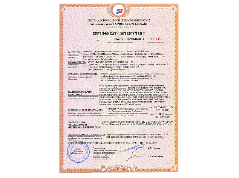 Продукция сертифицирована по системе противопожарной безопасности. Гарантия прибора 2 года.