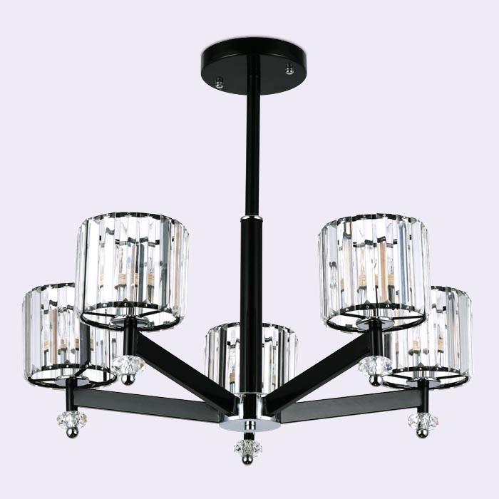Плафон и абажур изготовлены из хрусталя, что придает люстре изысканный вид. Диаметр плафона составляет 630 мм, а высота - 530 мм. Цвет плафона прозрачный, а основание выполнено из металла и окрашено в черный цвет.