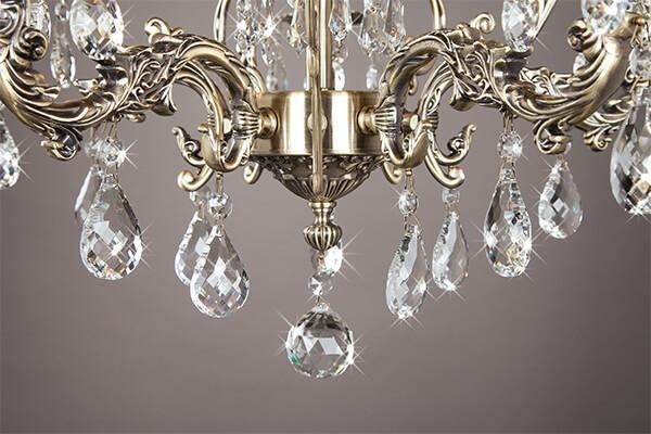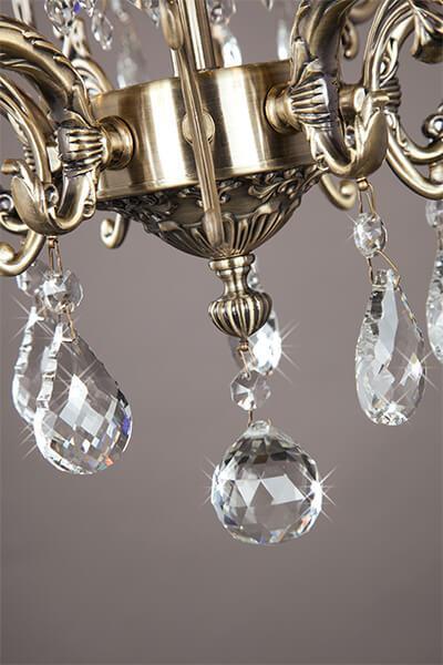Диаметр плафона составляет 500 мм, а высота люстры - 850 мм. Цвет плафона также бронзовый, что гармонично сочетается с цветом основания. Материал плафона - хрустальные элементы, которые придают люстре особый блеск и изысканность.
