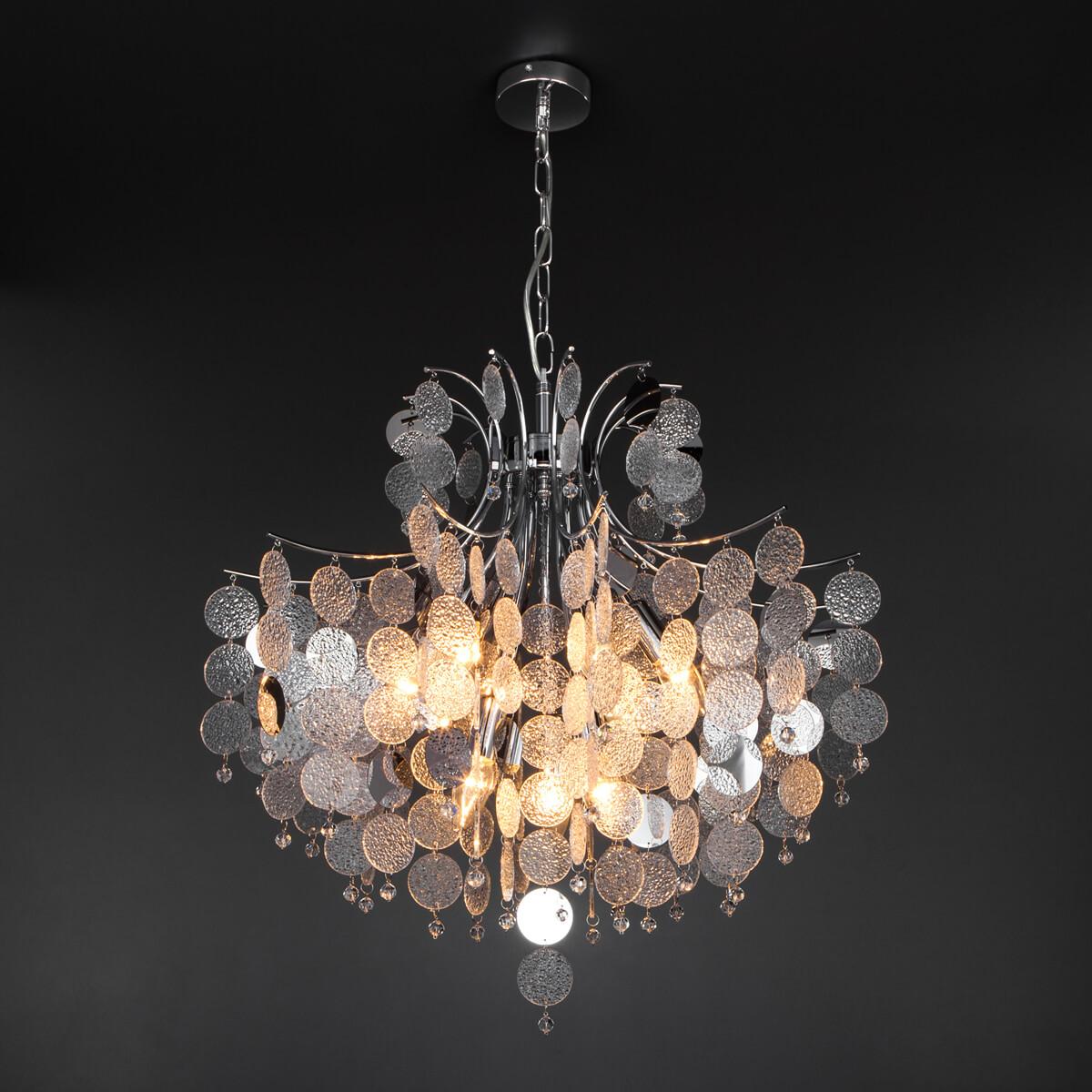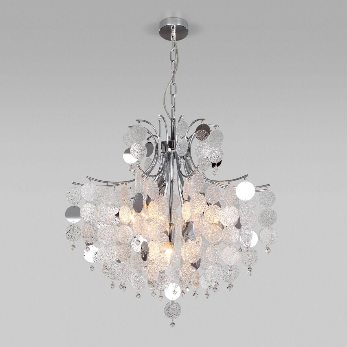 Цвет плафона и абажура - прозрачный, что позволяет свету равномерно распространяться по всему помещению. Стиль данной люстры можно охарактеризовать как арт-деко, что делает ее универсальной и подходящей для различных интерьеров.