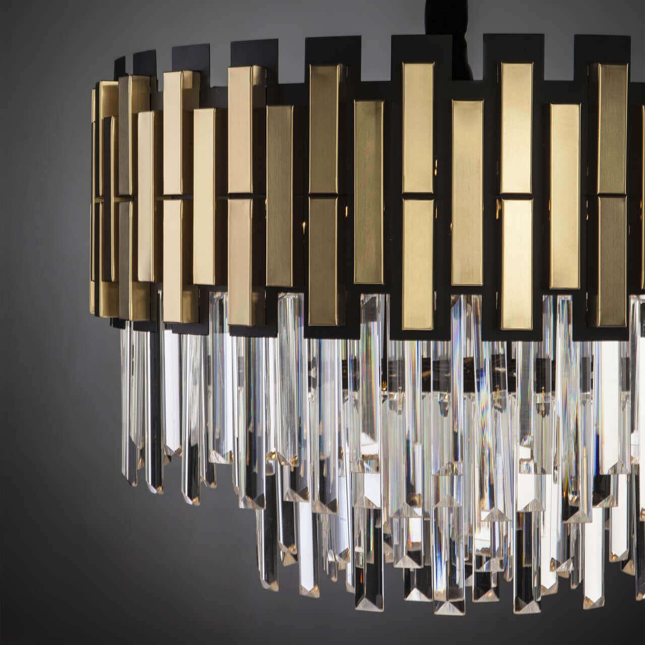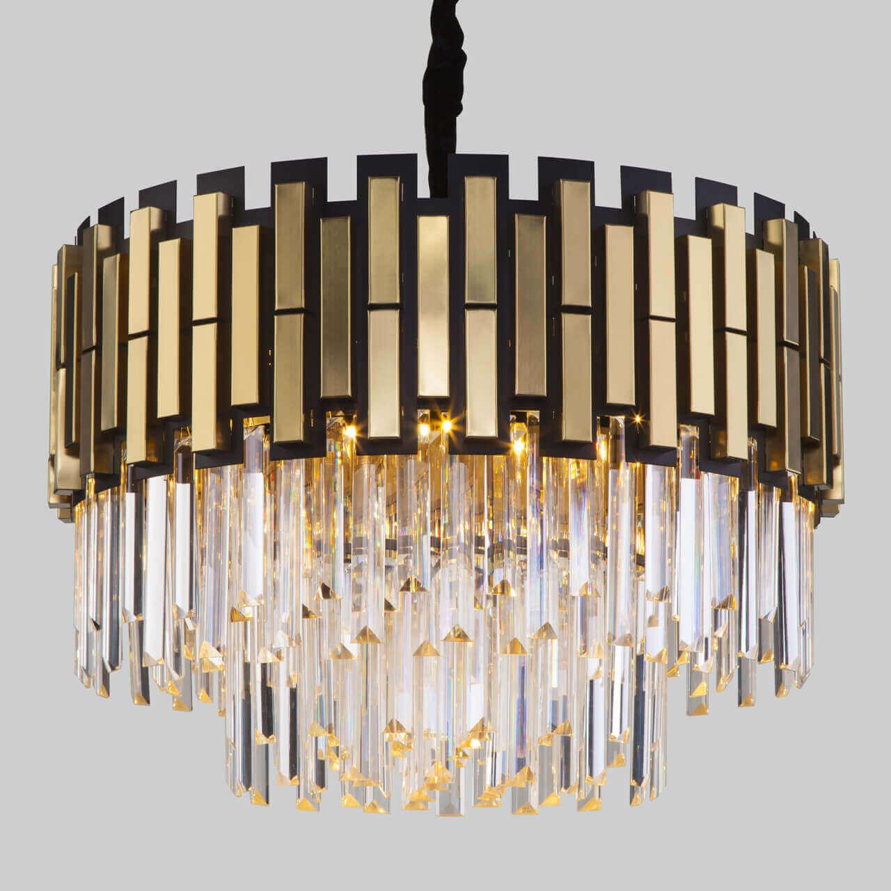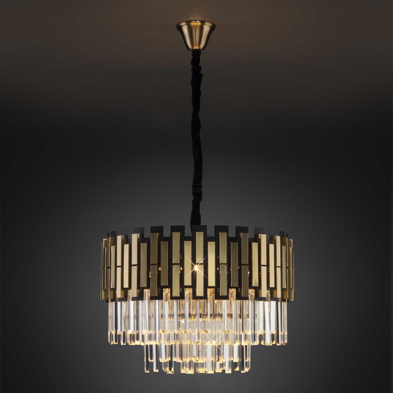 Материал плафона и абажура - металл, что придает люстре прочность и долговечность. Диаметр плафона составляет 570 мм, а высота - 390 мм. Цвет плафона и абажура - прозрачный, что создает эффект прекрасного свечения и игры света. Основание выполнено из металла в черном цвете, что придает конструкции стильный и современный вид.