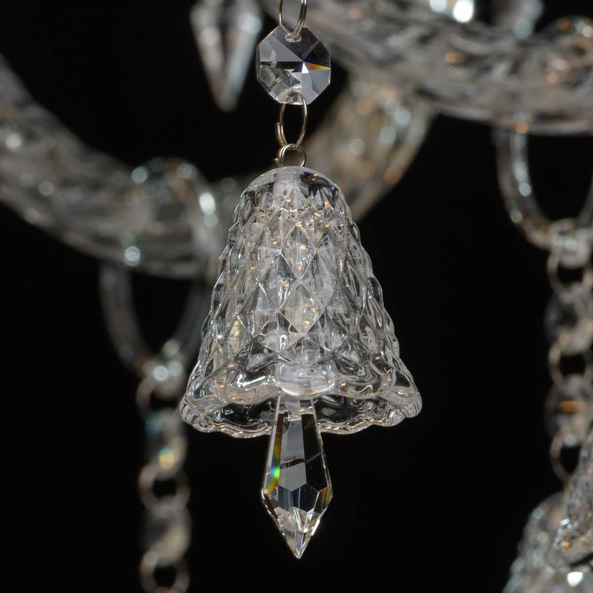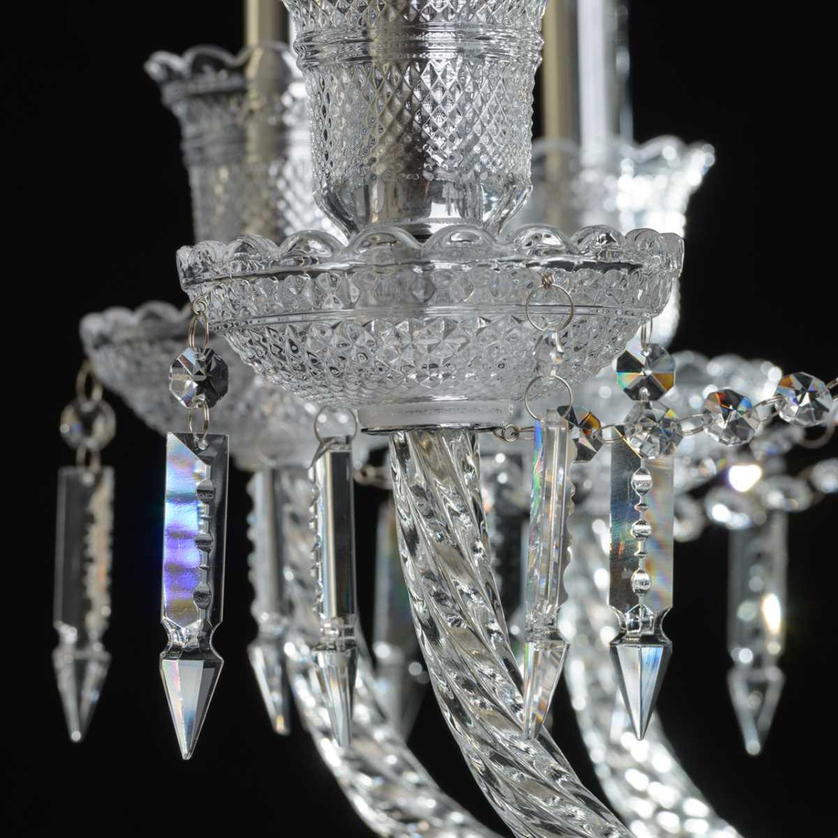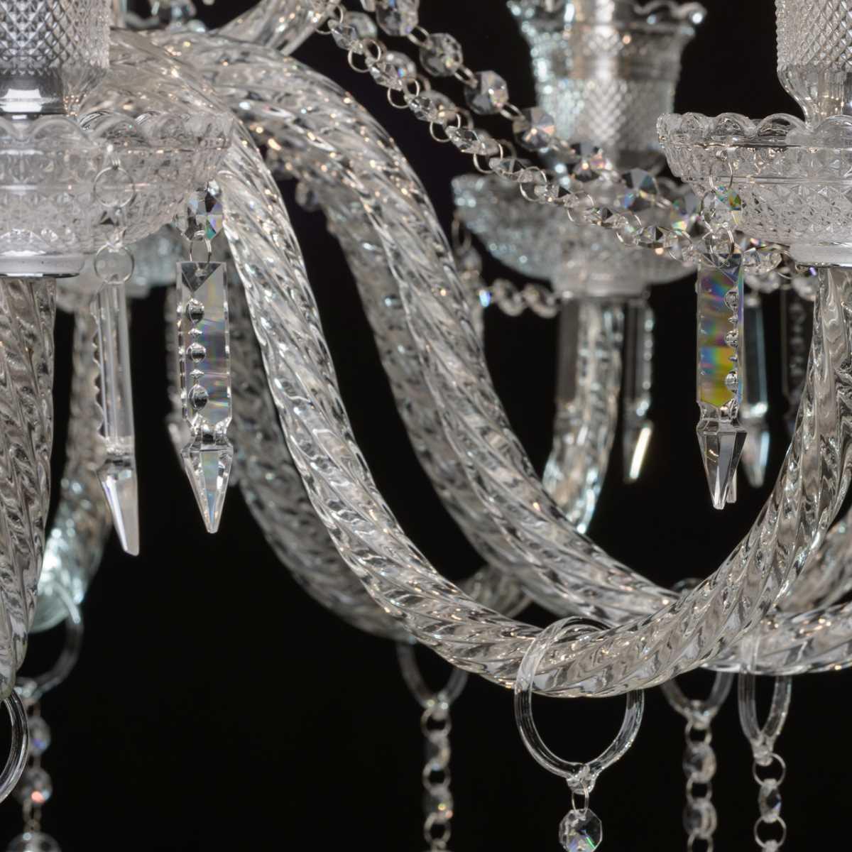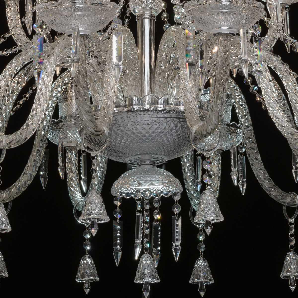 Люстра оснащена 18 лампочками с цоколем E14 и общей мощностью 720 Вт. Материал основания - металл, а цвет основания и плафона - хром. Хрустальные элементы добавляют изысканности и блеска этому светильнику.