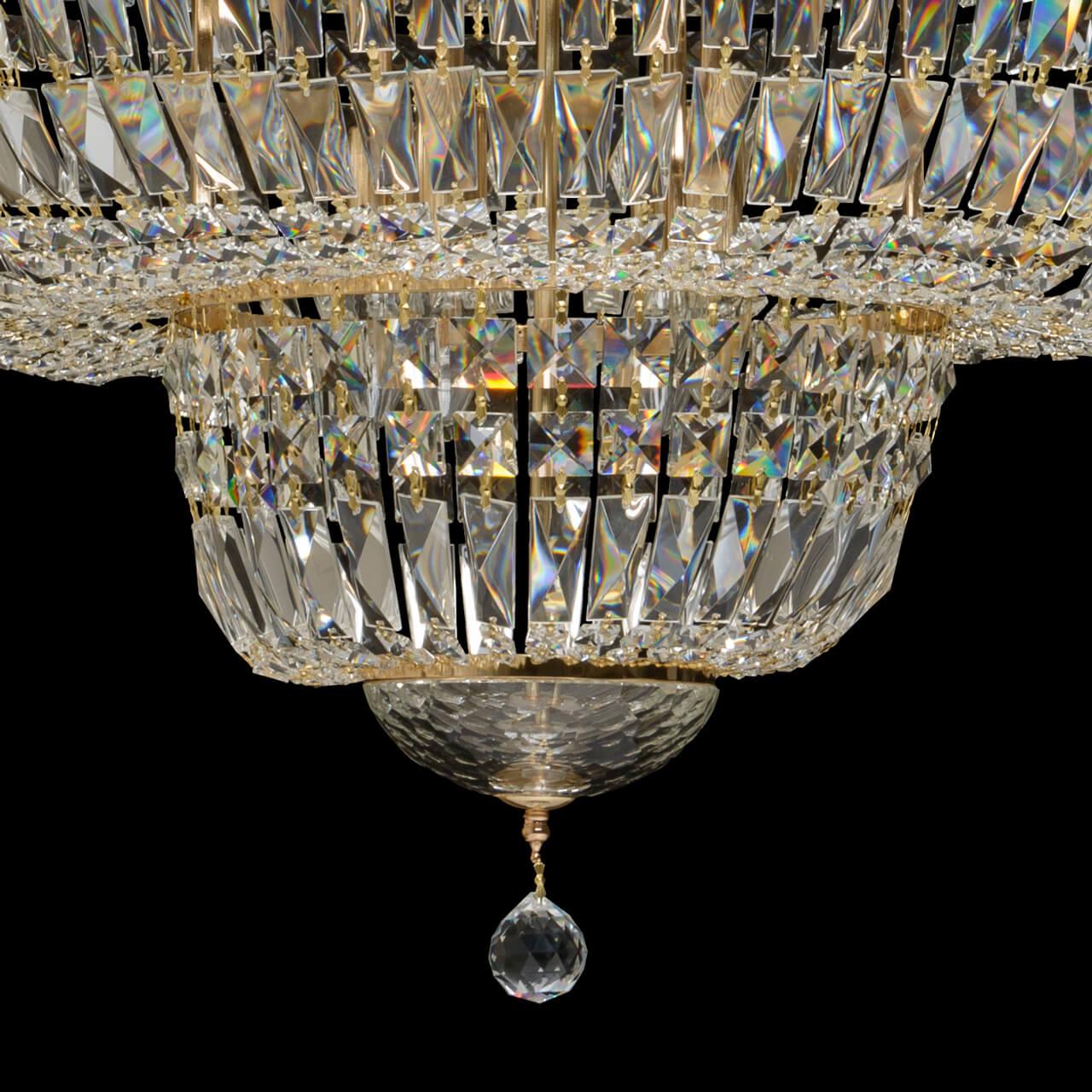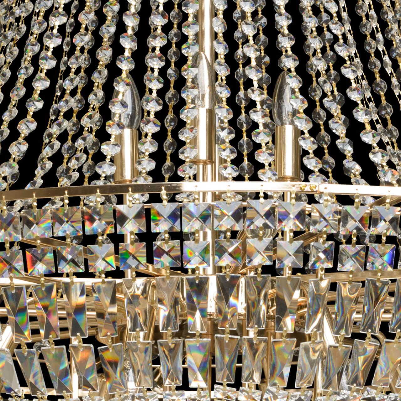 Подвесная люстра Chiaro Диана 2 340011536 - это изысканное освещение для интерьера в классическом стиле. Произведена в Германии, данная люстра отличается высоким качеством материалов и изысканным дизайном.Высота подвесной люстры составляет 2300 мм, диаметр - 1300 мм. Основание изготовлено из металла с золотистым оттенком, а плафон выполнен из хрусталя, что придает изделию особую элегантность. Цвет плафона прозрачный, что позволяет свету проникать свободно и создавать уютную атмосферу.