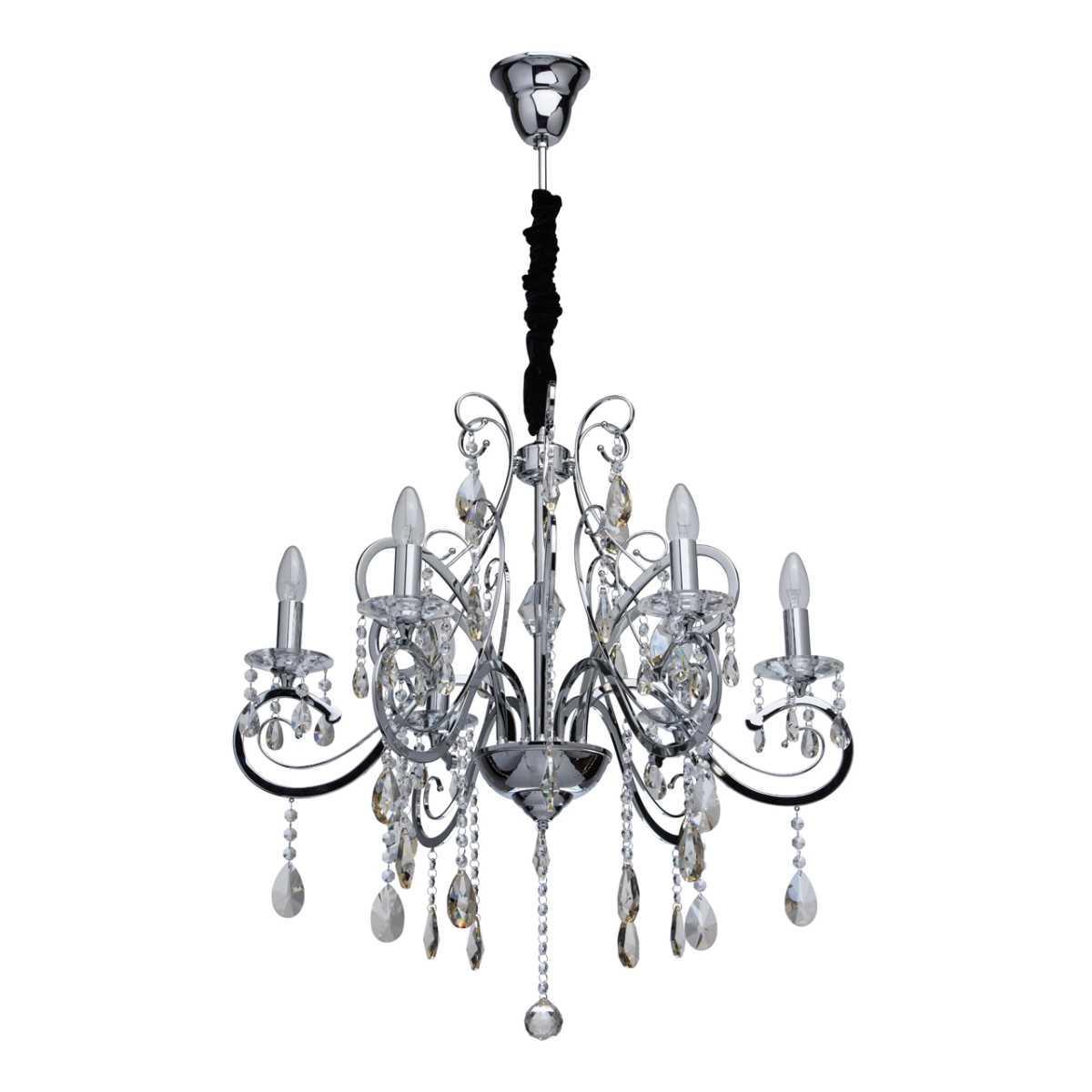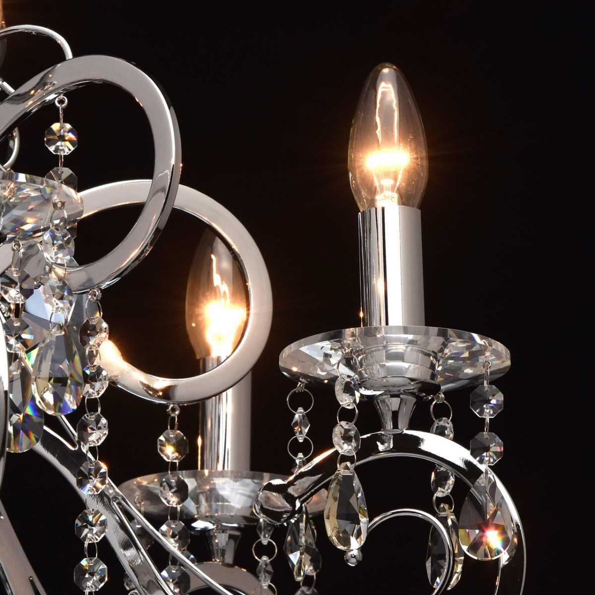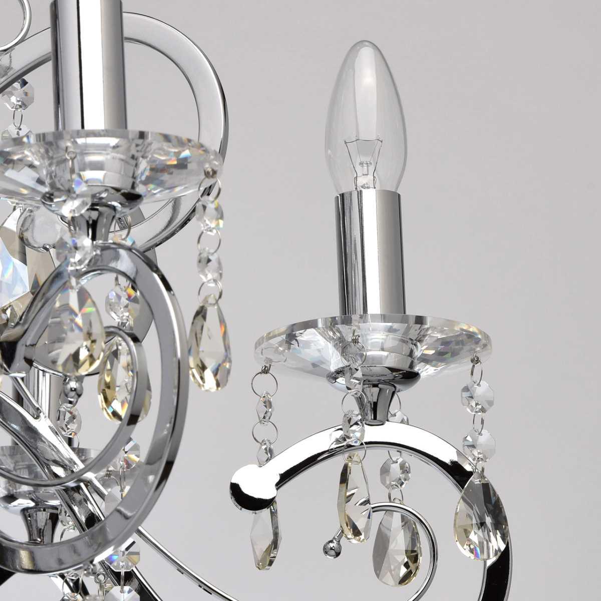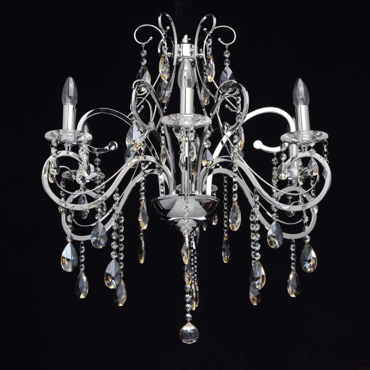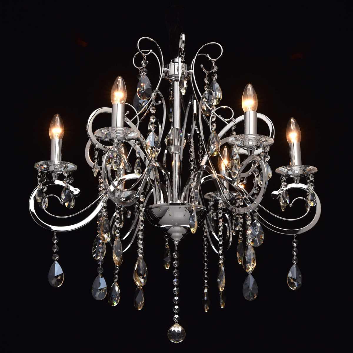 Материал основания - металл, окрашенный в хромированный цвет, что придает люстре элегантный вид. Диаметр светильника составляет 780 мм, а высота - 1220 мм. Хрустальные элементы добавляют изысканности и блеска.