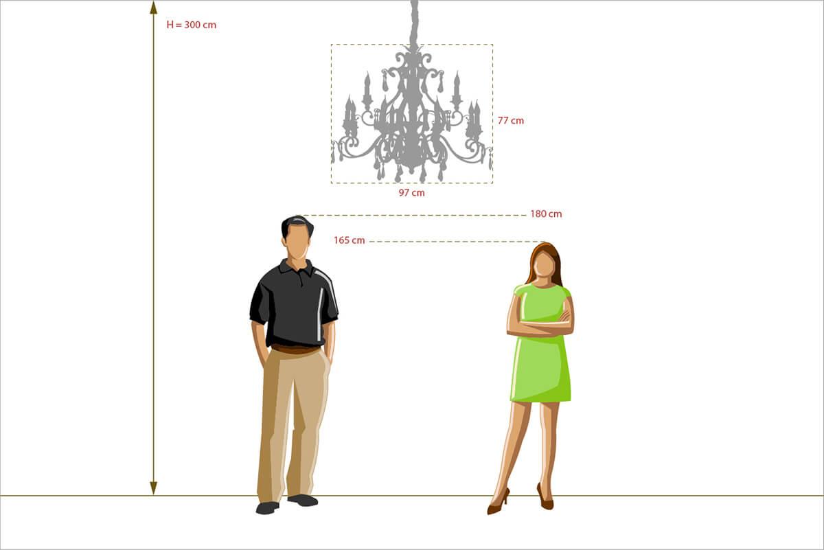 С общей мощностью 480 Вт и напряжением 220 В, эта люстра обеспечивает достаточное освещение для больших помещений. Диаметр плафона составляет 970 мм, а высота - 770 мм, что делает ее заметным элементом интерьера.