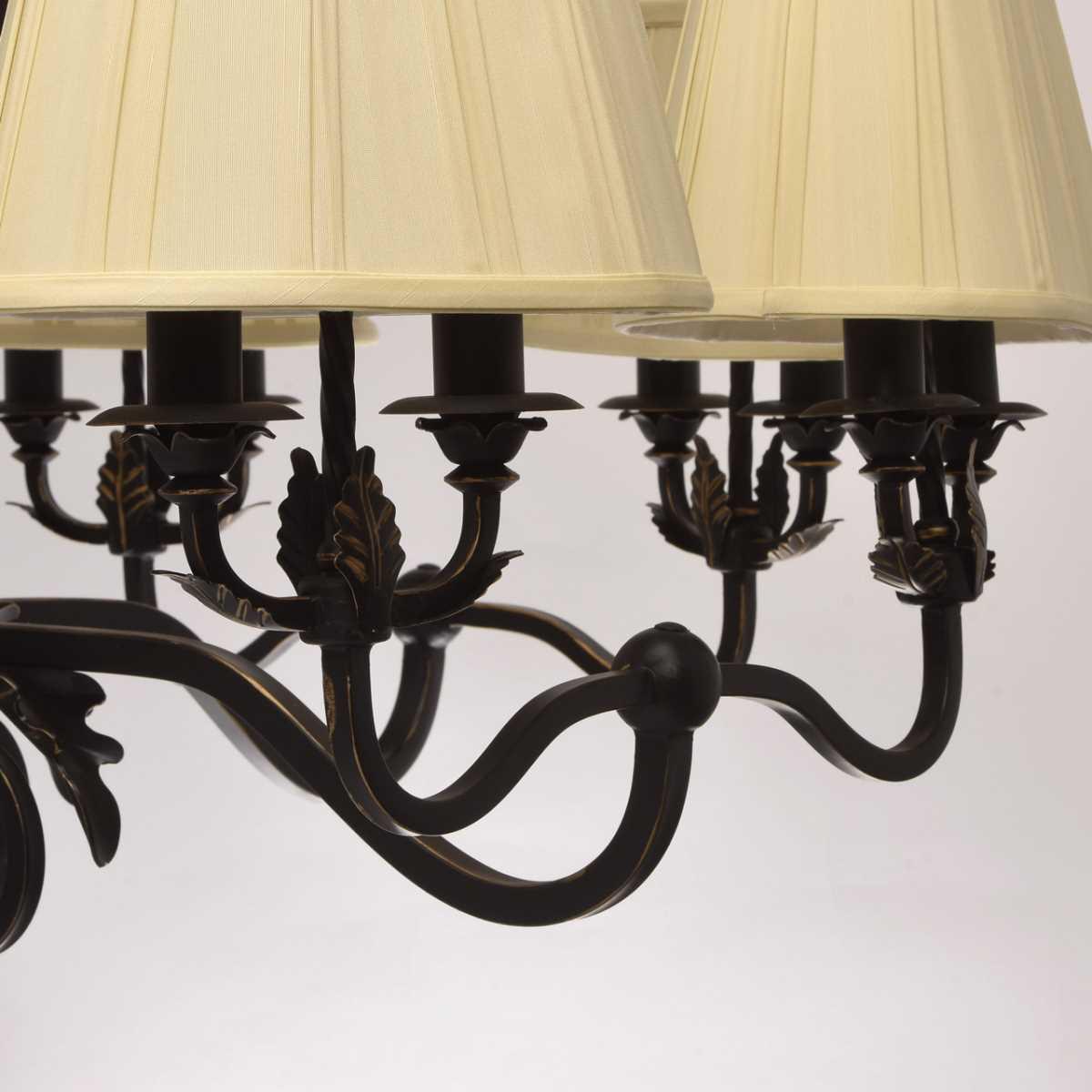 Подвесная люстра Chiaro Виктория 401010624 - это изысканное освещение для интерьера в классическом стиле. Произведенная в Германии, данная люстра сочетает в себе элегантность и функциональность.Высота подвесной люстры составляет 2000 мм, диаметр - 1100 мм. Основание изготовлено из прочного металла в коричневом цвете, а плафон выполнен из ткани в бежевом оттенке. Конусная форма плафона придает особый шарм данной модели.