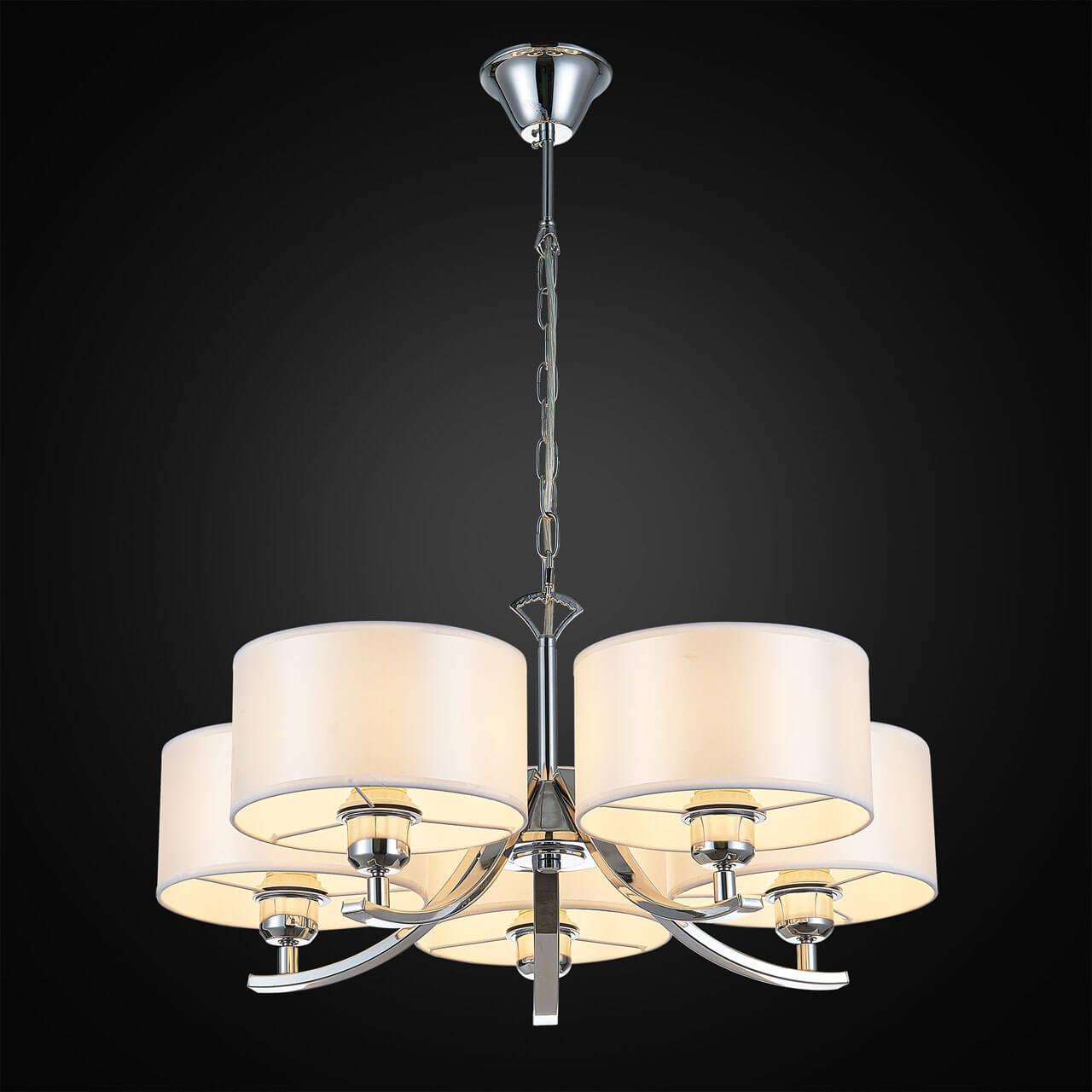 Подвесная люстра Citilux Эвита CL466150 - это изысканное и элегантное освещение для вашего интерьера. Произведенная в Дании, она сочетает в себе стиль арт-деко и функциональность.Эта подвесная люстра имеет пять лампочек с цоколем E27 и общей мощностью 375 Вт. Высота ее составляет 1200 мм, диаметр - 630 мм. Плафон и абажур выполнены из ткани белого цвета, что придает освещению мягкость и уют. Основание из металла с хромированным покрытием дополняет общий дизайн и придает изделию прочность.