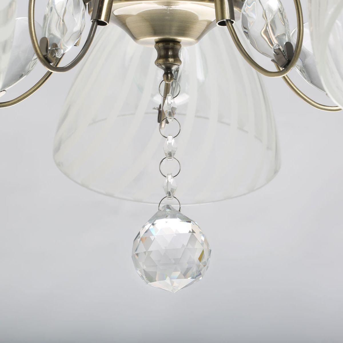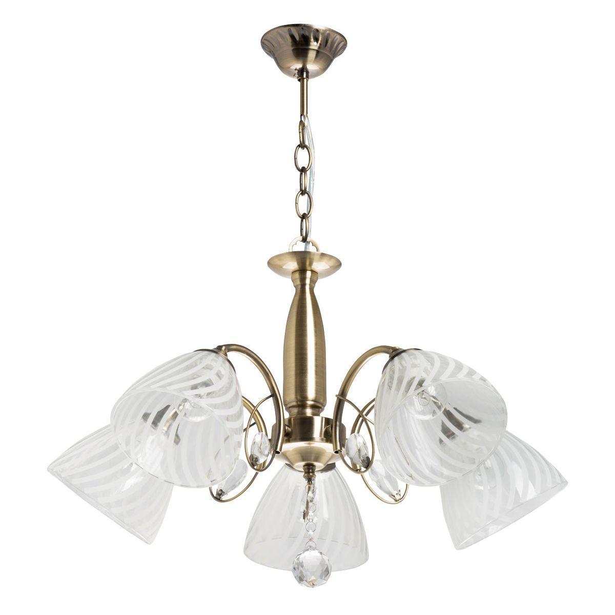 Светильник оснащен пятью цоколями E27, позволяющими использовать лампы накаливания мощностью до 60 Вт каждая. Общая мощность люстры составляет 300 Вт, обеспечивая достаточное освещение помещения. Диаметр плафона составляет 550 мм, а высота - 610 мм, что делает эту люстру идеальным выбором для помещений с высокими потолками.