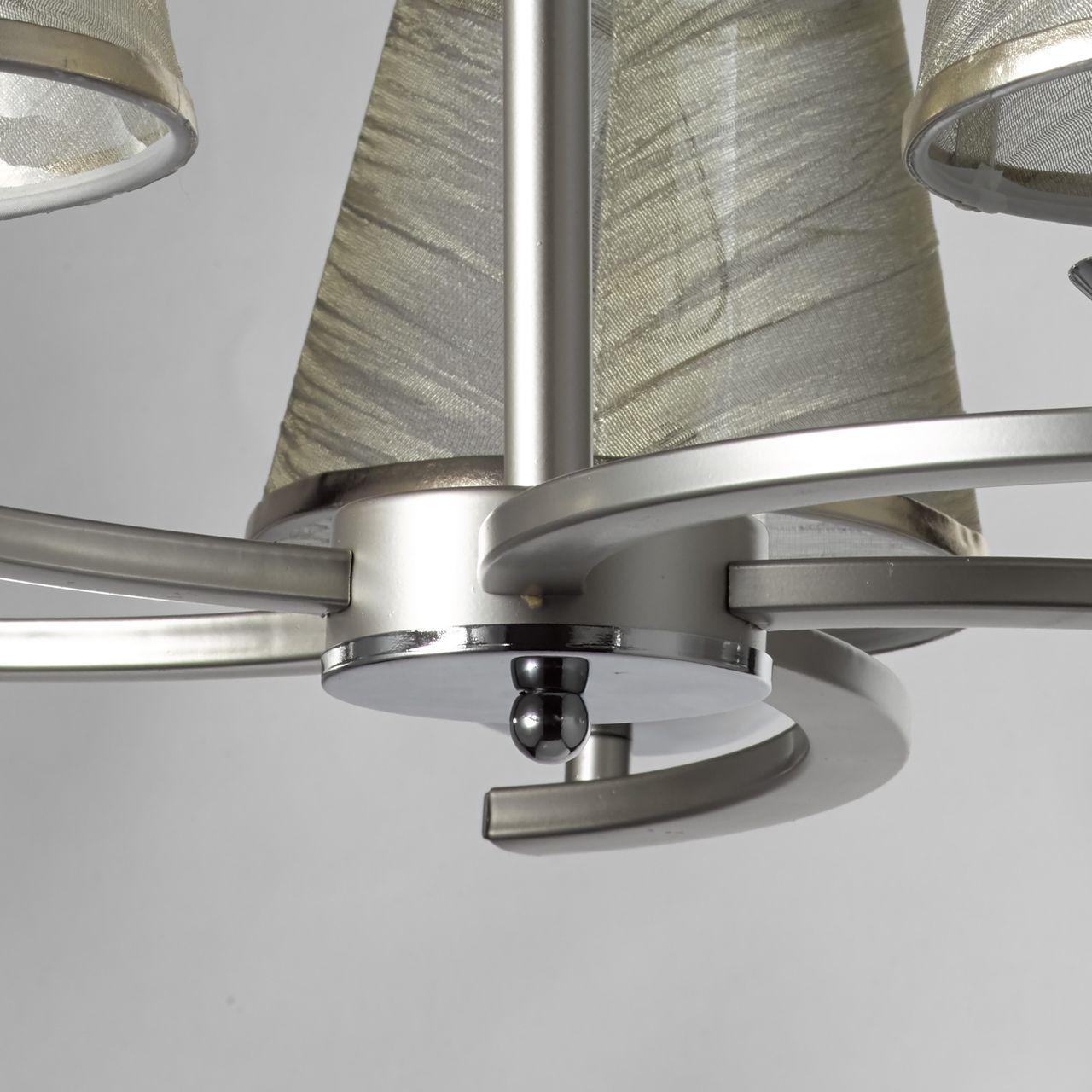 Подвесная люстра De Markt City Виталина 448014605 - это элегантное освещение для интерьера в стиле неоклассика. Бренд De Markt из Германии представляет эту изысканную модель, которая станет прекрасным дополнением к любому помещению.Люстра имеет пять цоколей E14, предназначенных для ламп накаливания мощностью до 60 Вт каждая. Общая мощность освещения составляет 300 Вт. Высота подвеса составляет 810 мм, диаметр плафона - 600 мм. Материал плафона изготовлен из ткани бежевого цвета, что придает освещению мягкость и уют. Основание выполнено из металла в серебристом оттенке.