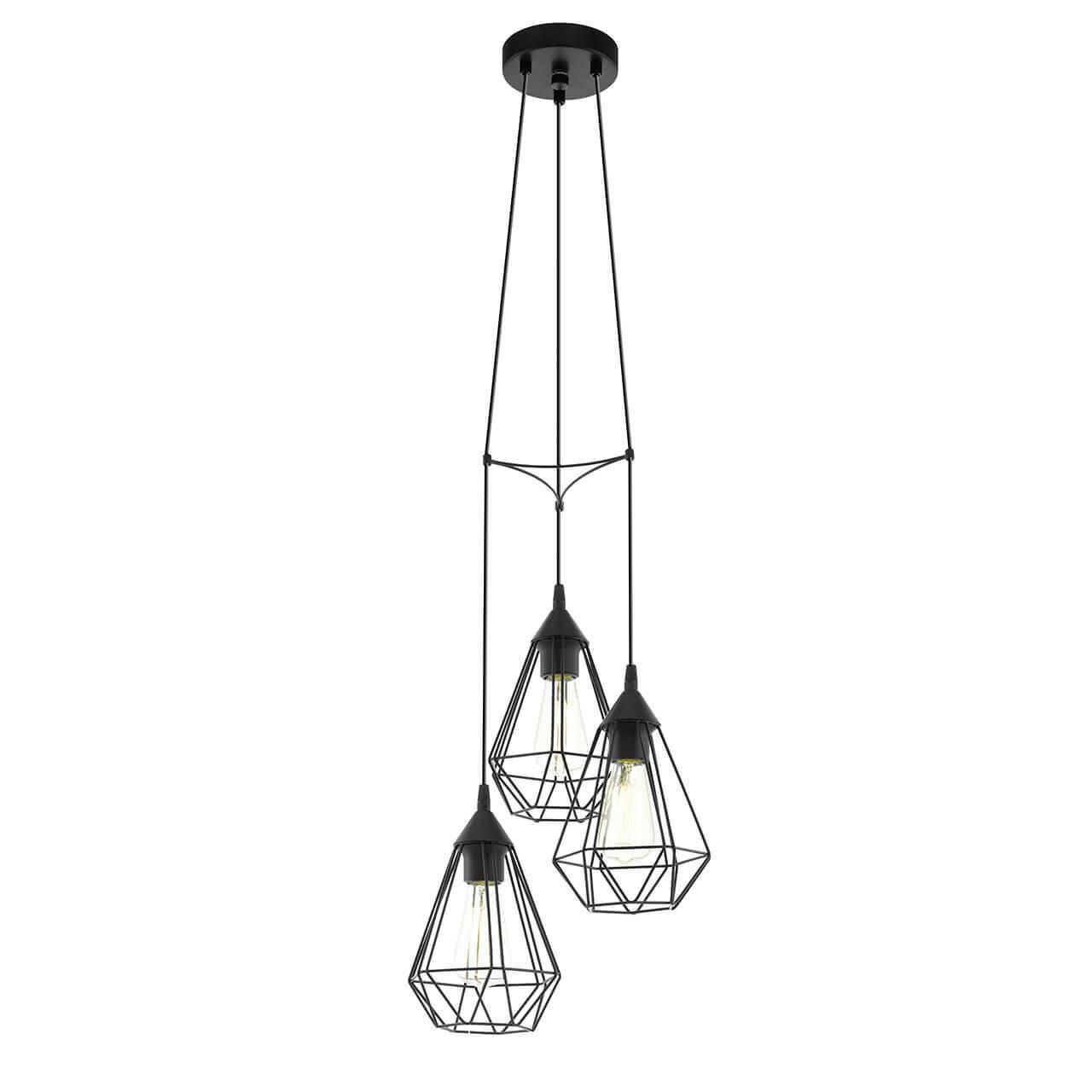Подвесная люстра Eglo Tarbes 94191 - это стильное и функциональное освещение для интерьера в стиле лофт. Произведенная в Австрии, данная люстра отличается высоким качеством материалов и сборки, что подтверждается гарантией производителя на 2 года.Люстра имеет черный металлический плафон декоративной формы диаметром 310 мм. Основание выполнено из пластика в черном цвете. В комплекте поставляются 3 лампочки с цоколем E27 и общей мощностью 180 Вт. Напряжение 230 В, степень защиты IP20.