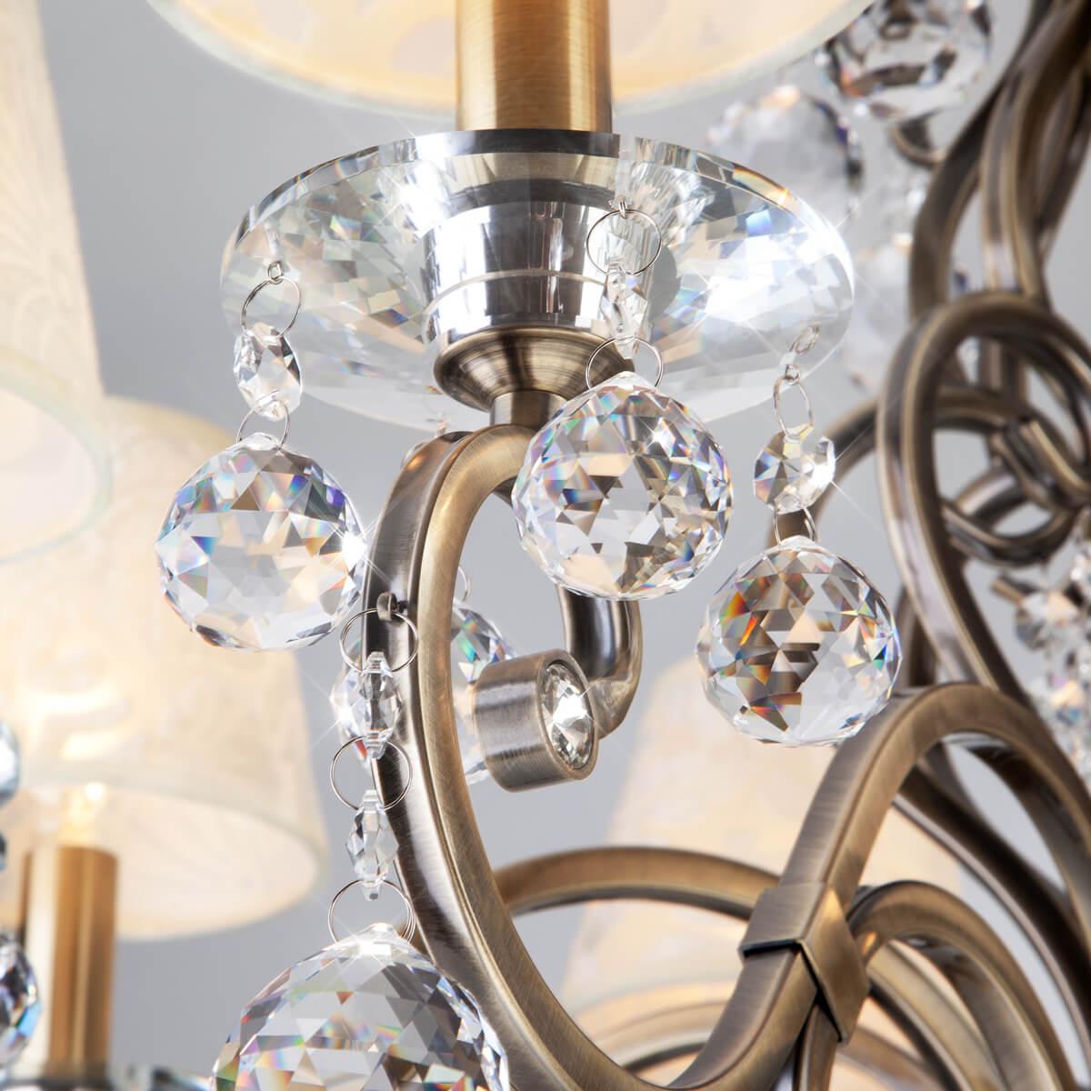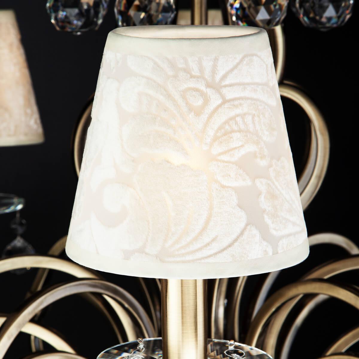 Светильник оснащен восемью цоколями E14, позволяющими использовать лампы мощностью до 60 Вт каждая. Общая мощность составляет 480 Вт, обеспечивая достаточное освещение помещения. Плафон и абажур выполнены из ткани бежевого цвета, что создает мягкий и приятный свет.