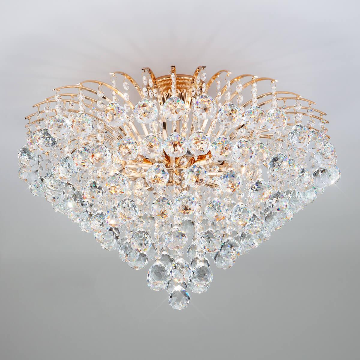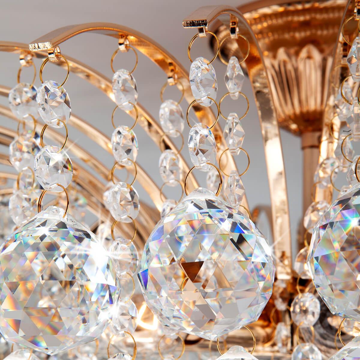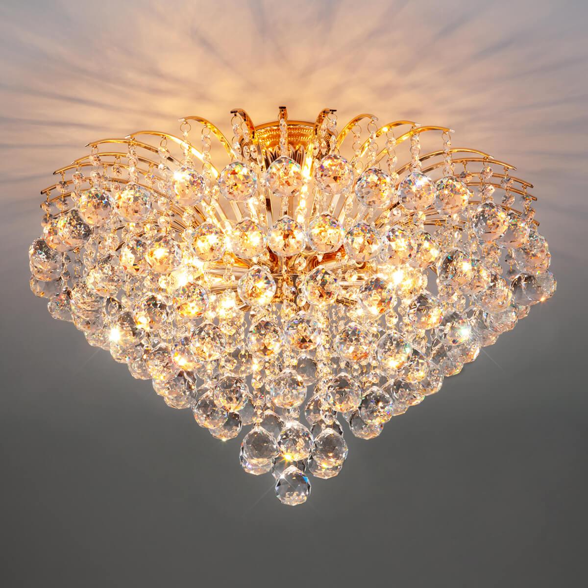 Установка данной люстры предусмотрена на потолке. Она идеально подойдет для интерьера в классическом стиле, придавая помещению изысканность и роскошь. Хрустальные элементы отражают свет, создавая игру света и тени в комнате.