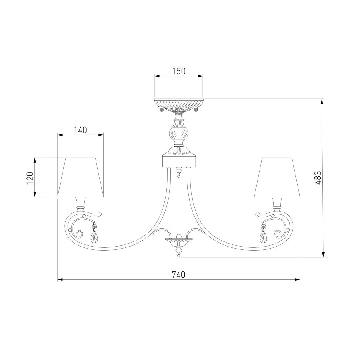 Светильник оснащен восемью лампочками с цоколем E14 и общей мощностью 320 Вт, что обеспечивает достаточное освещение помещения.
