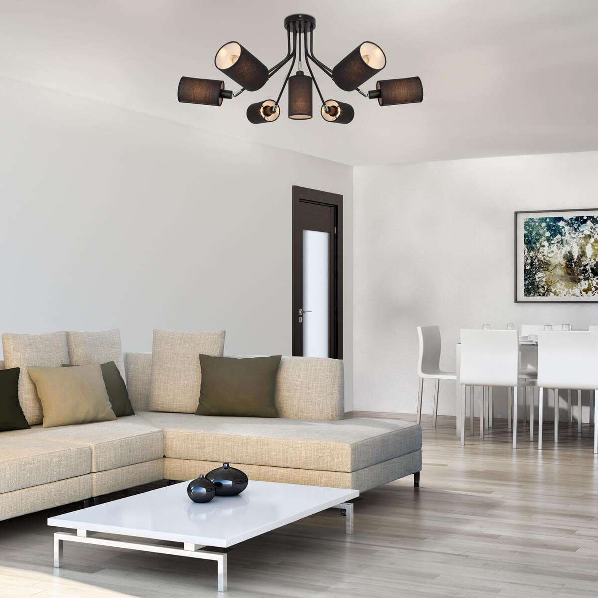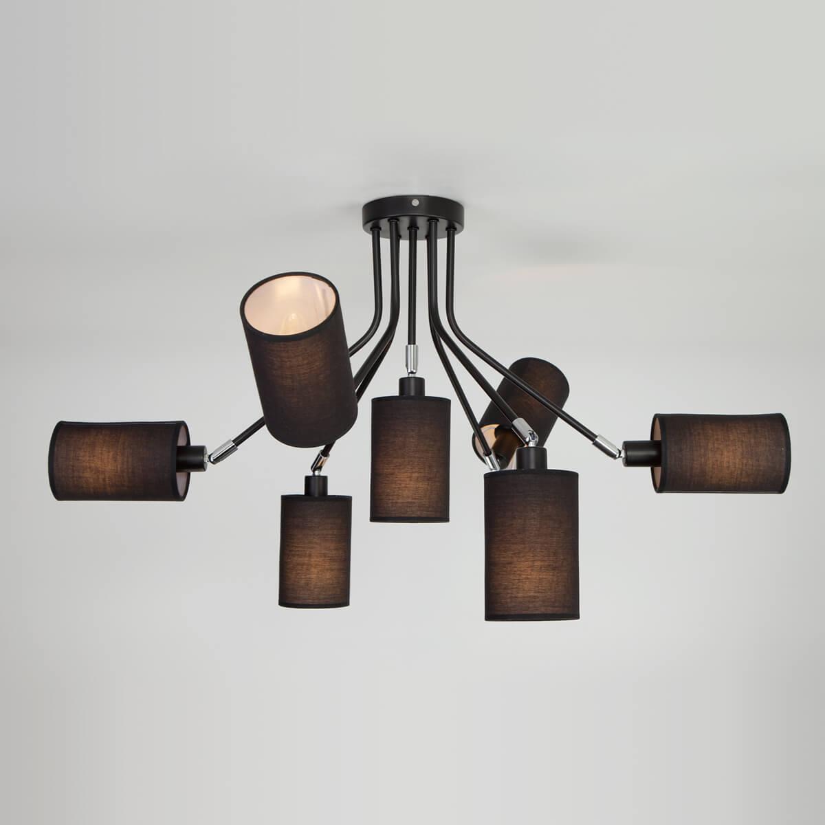 Установка данной люстры предусмотрена на потолок, что позволяет ей эффективно освещать пространство в комнате. Сочетание черного цвета плафона и основания придает ей стильный и современный вид, который подойдет для различных интерьеров.