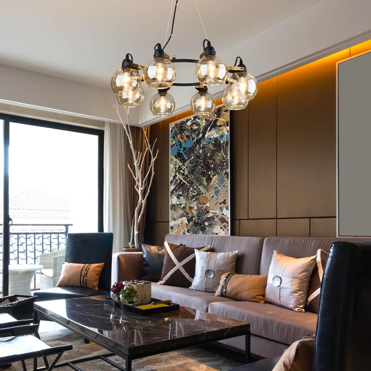 Цвет плафона и абажура - янтарный, что придает люстре изысканный и элегантный вид. Благодаря степени защиты IP20, она подходит для использования в сухих помещениях. Установка на потолок делает ее удобной и практичной в использовании.