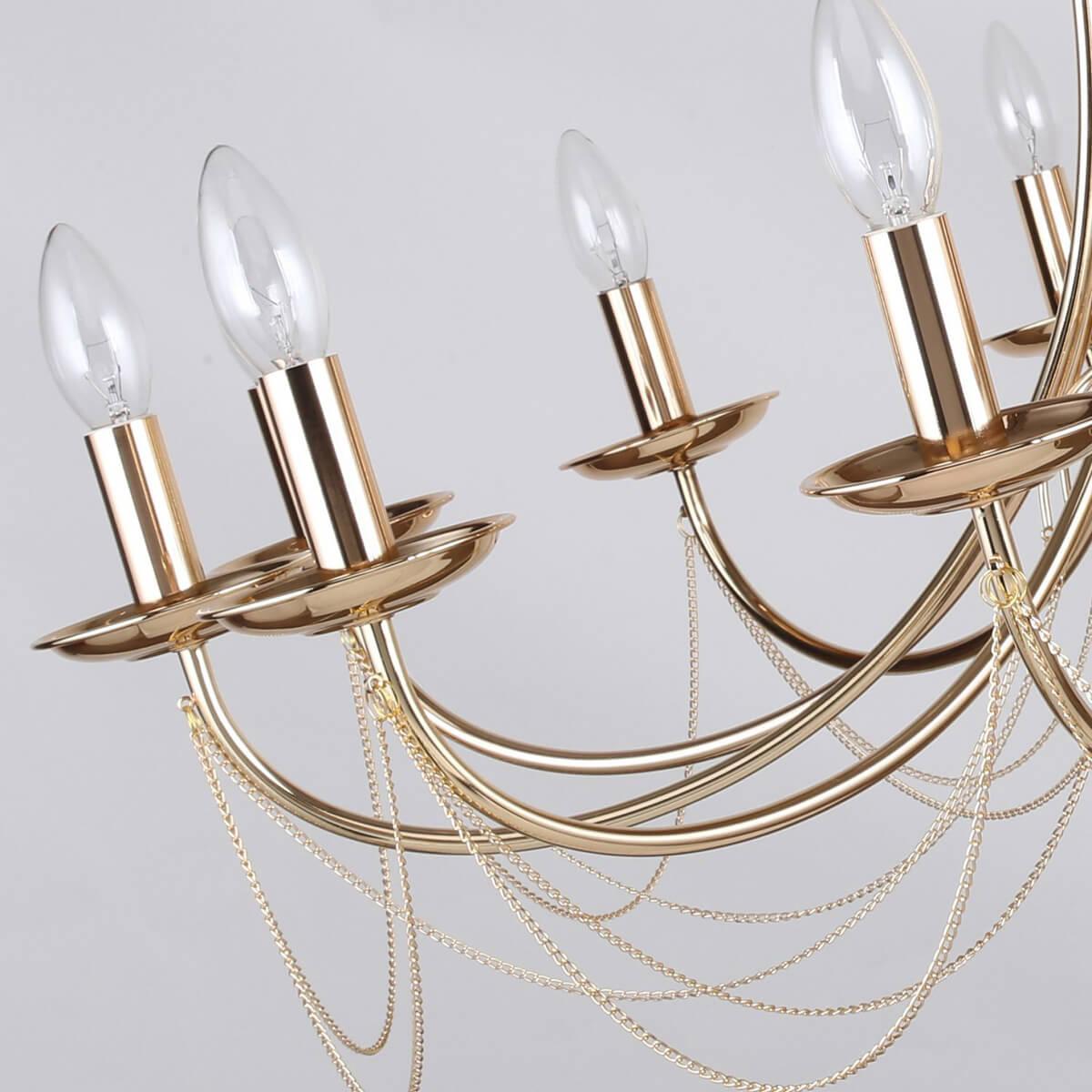 Подвесная люстра F-Promo Plini 2591-12P - это элегантное освещение для интерьера, произведенное в Германии. Она отличается стильным дизайном в замковом стиле, который придаст вашему помещению изысканность и изысканность.Эта люстра имеет 12 лампочек с цоколем E14 и общей мощностью 480 Вт. Материал основания изготовлен из металла и окрашен в золотой цвет, что придает изделию роскошный вид. Диаметр плафона составляет 960 мм, а высота - 580 мм.