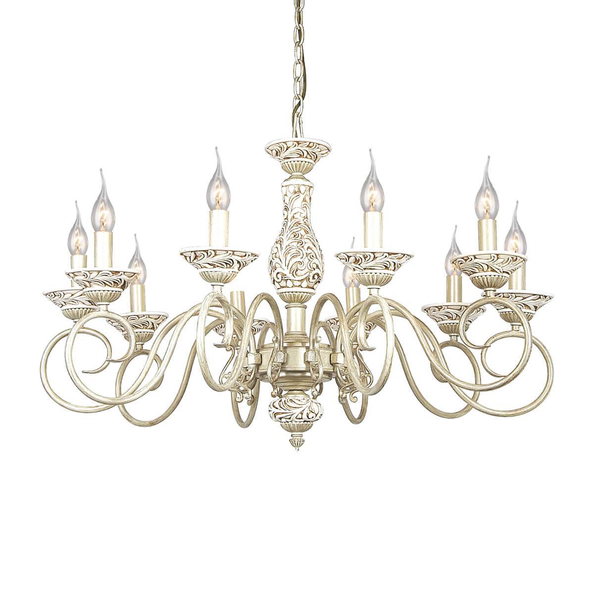 Люстра оснащена цоколем E14 и предназначена для установки на потолок. В комплекте идут 10 лампочек накаливания, общая мощность которых составляет 600 Вт. Материал основания - металл, цвет которого бежевый. Диаметр люстры равен 850 мм, а высота достигает 1600 мм.