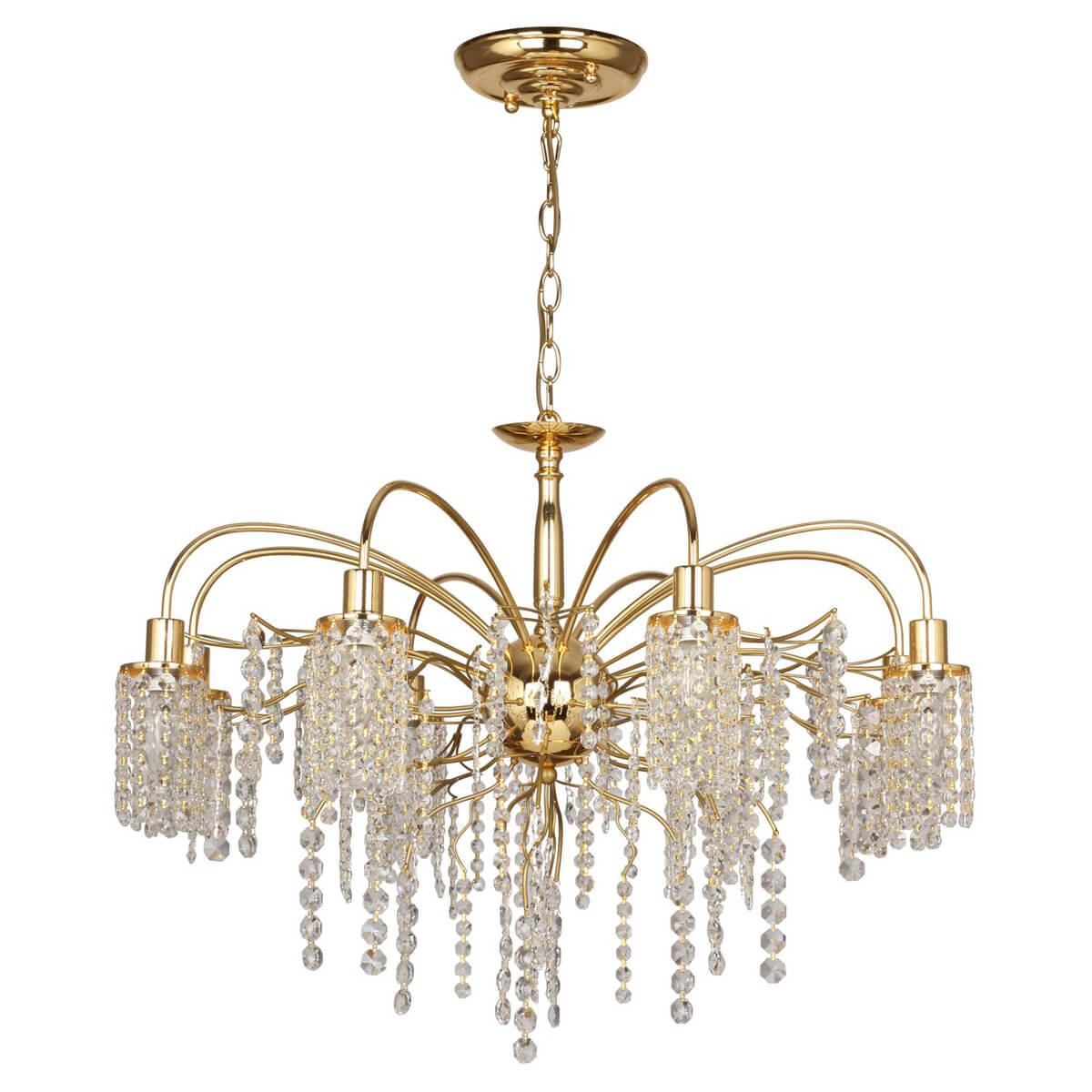 Подвесная люстра Favourite Caesar 2636-8U - это изысканное освещение для гостиной в классическом стиле от немецкого бренда Favourite. Артикул 2636-8U представляет собой элегантную люстру с восемью лампами мощностью 40 Вт каждая.Высота подвесной люстры составляет 590 мм, диаметр - 810 мм. Основание изготовлено из металла с золотистым оттенком, а плафон выполнен из хрусталя, что придает изделию изысканный вид. Цвет плафона прозрачный, а цвет основания - золотой.