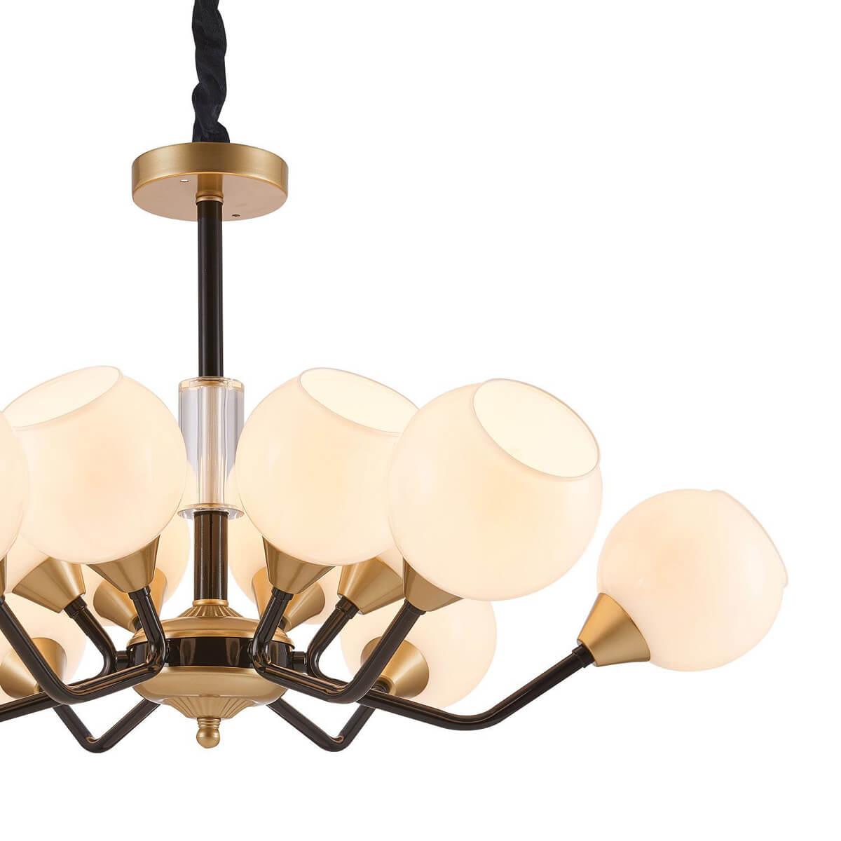 Сочетание стекла, металла и кремового цвета делает эту люстру универсальной и легко вписывающейся в различные интерьеры. Она станет не только источником света, но и стильным акцентом в вашем доме.