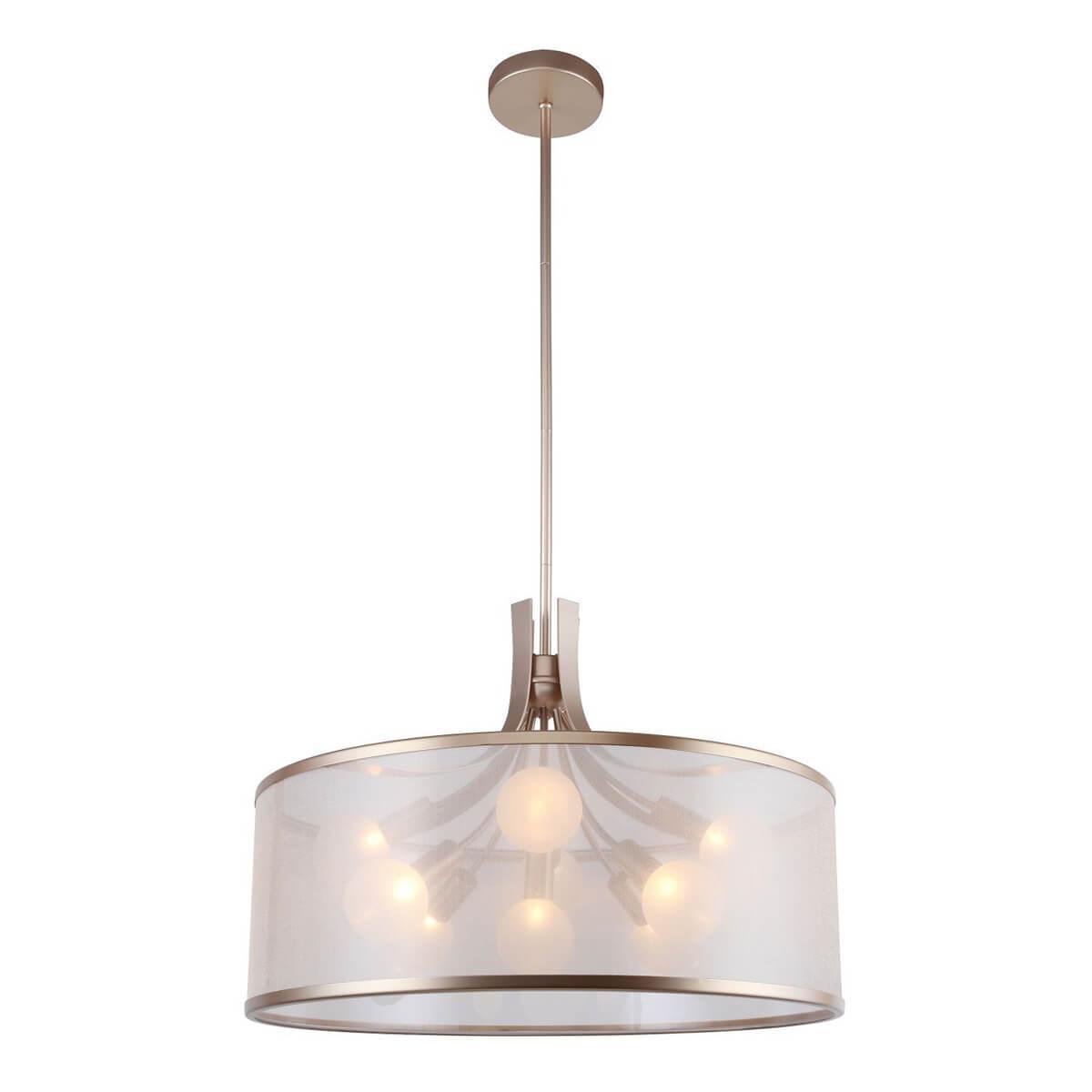 Подвесная люстра Favourite Himiko 2551-9P - это стильный и элегантный элемент освещения для гостиной, который привнесет изысканность в интерьер помещения. Произведенная в Германии, данная люстра отличается высоким качеством и надежностью.Люстра имеет дизайнерский стиль и выполнена в белом цвете, что придает ей легкость и изысканность. Основание изготовлено из металла и окрашено в золотой цвет, что придает элементу роскошный вид. Плафон из органзы имеет форму цилиндра и диаметр 600 мм, что обеспечивает равномерное и приятное освещение в помещении.
