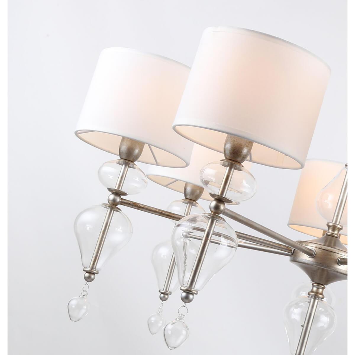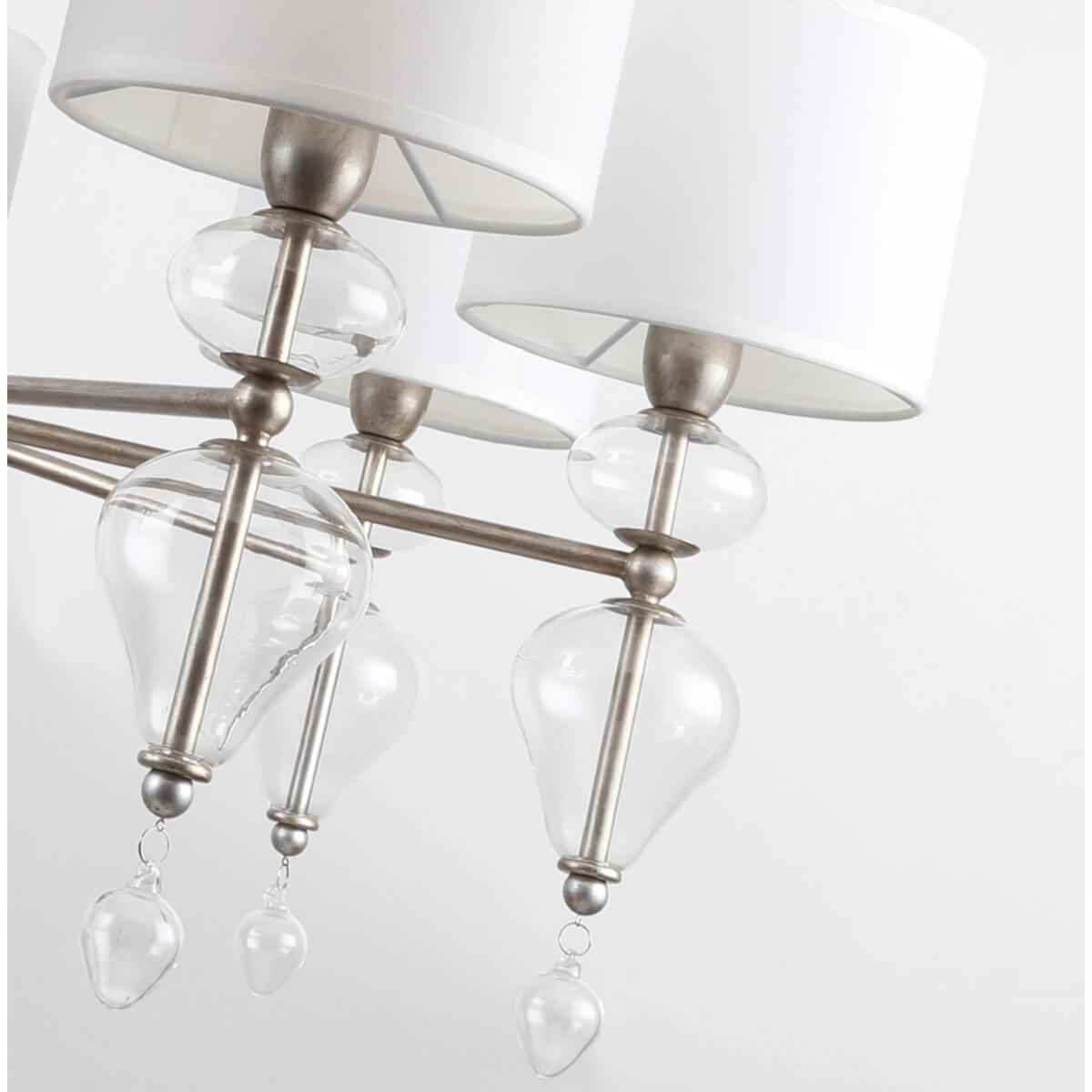 Подвесная люстра Favourite Ironia 2554-7P - это элегантное и стильное освещение для гостиной, которое привнесет изысканность и уют в интерьер помещения. Бренд Favourite из Германии предлагает эту модель из коллекции Ironia, выполненную в арт-деко стиле.Люстра оснащена семью лампами с цоколем E14 и общей мощностью 280 Вт, что обеспечивает достаточное освещение помещения. Высота подвеса составляет 580 мм, диаметр плафона - 790 мм. Материал плафона из ткани, цвет белый, что придает светильнику изысканный и легкий вид. Основание выполнено из металла в серебристом цвете, что придает конструкции прочность и надежность.