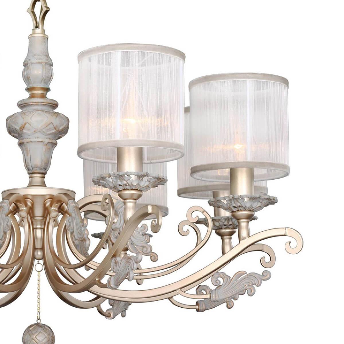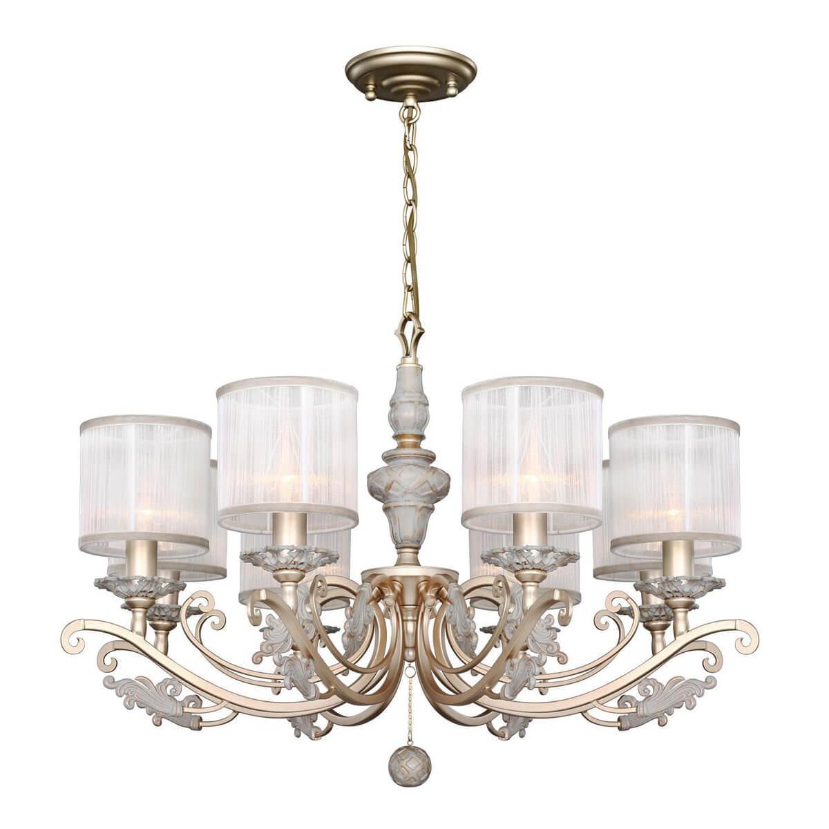 Подвесная люстра Favourite Seraphima 2307-8P - это изысканное освещение для гостиной, сочетающее в себе классический стиль и немецкое качество. Артикул 2307-8P отличается высокой функциональностью и эстетическим дизайном, который подчеркнет утонченность интерьера.Эта люстра имеет восемь плафонов из органзы белого цвета, создавая мягкое и приятное освещение в помещении. Диаметр плафона составляет 735 мм, а высота - 490 мм, что делает ее заметным элементом интерьера. Основание из металла выполнено в золотистом цвете, придавая люстре изысканный вид.