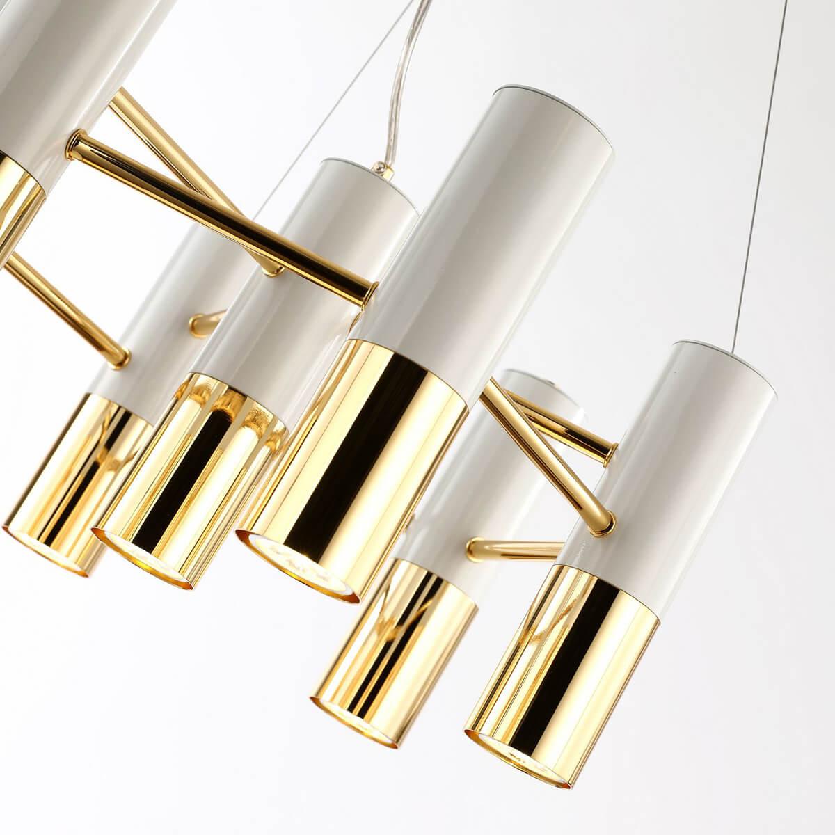 Подвесная люстра Favourite Ultra 2755-7P - это элегантное и стильное освещение для спальни, которое добавит изысканности и уюта в интерьер комнаты. Бренд Favourite из Германии предлагает эту модель с артикулом 2755-7P, обеспечивая гарантию на товар в течение трех лет.Люстра имеет дизайнерский стиль и выполнена из металла. Плафон и абажур окрашены в белый цвет, что придает освещению нежность и свежесть. Основание из металла имеет золотистый оттенок, который придает изделию изысканность и роскошь.