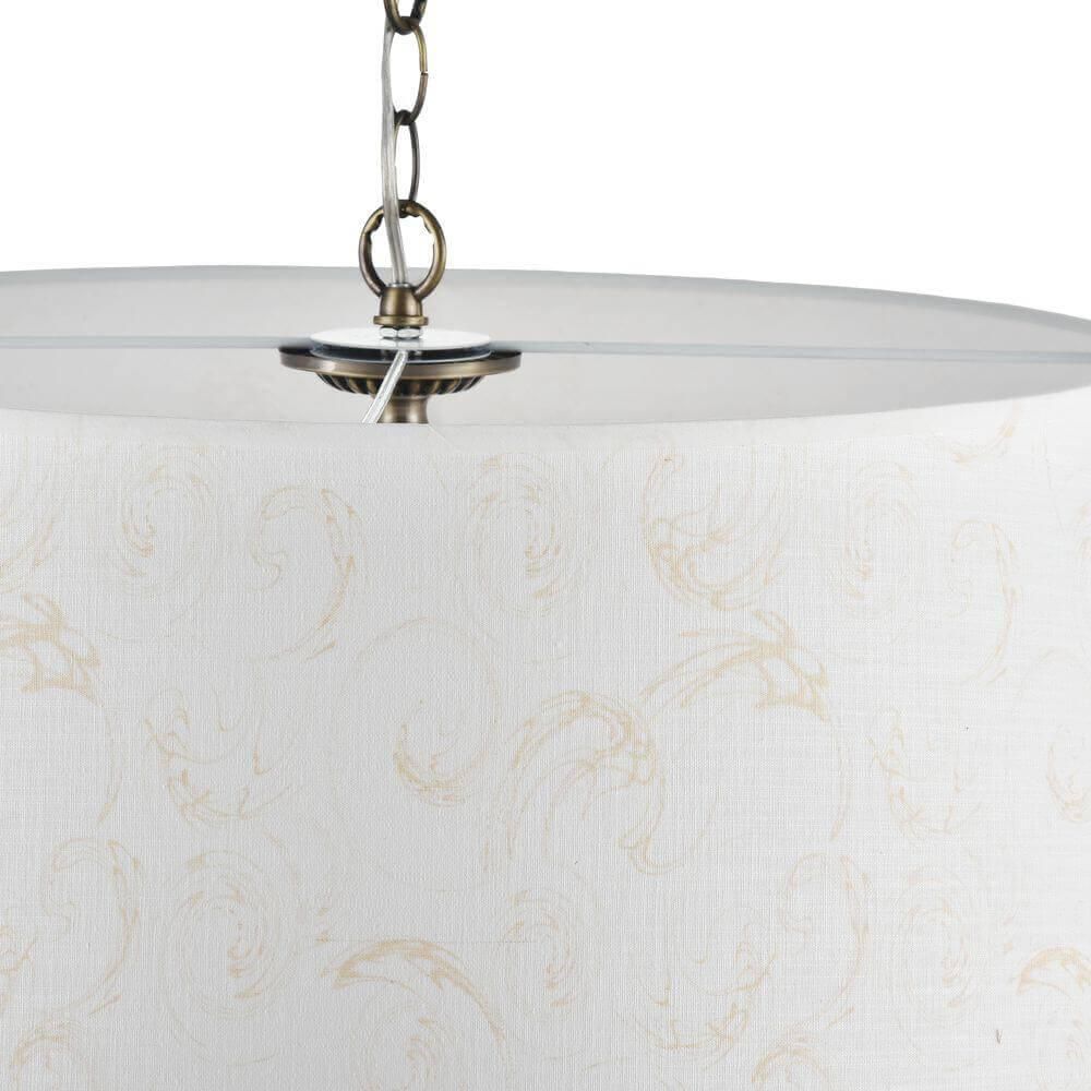 Плафон и абажур изготовлены из качественной ткани белого цвета, что придает освещению мягкий и приятный оттенок. Основание выполнено из металла в бронзовом цвете, что придает конструкции элегантность и изысканность.