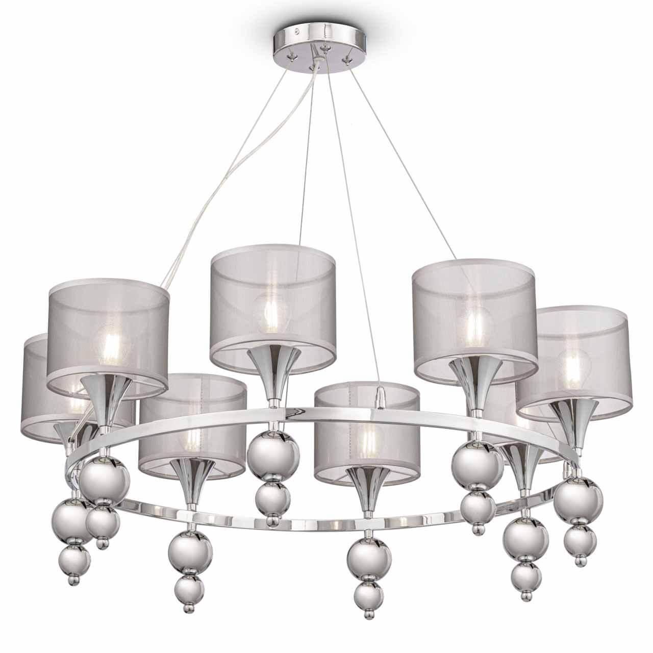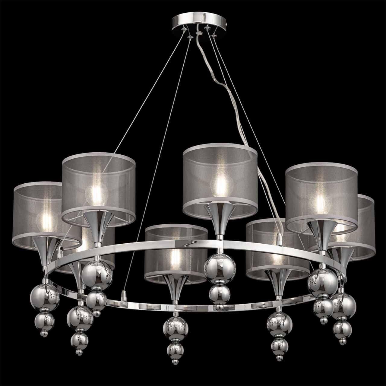 Подвесная люстра Freya Lauren FR5093PL-08CH - это элегантное и стильное освещение для гостиной, которое добавит изысканности и уютности вашему интерьеру. Бренд Freya из Германии предлагает эту модель из коллекции Lauren, выполненную в современном стиле.Люстра оснащена восемью лампочками с цоколем E14 и общей мощностью 320 Вт. Материал плафона и абажура - ткань, что придает освещению мягкость и теплоту. Диаметр плафона составляет 750 мм, а высота - 1000 мм. Цветовое решение в серебряных тонах придает люстре изысканность и шарм.