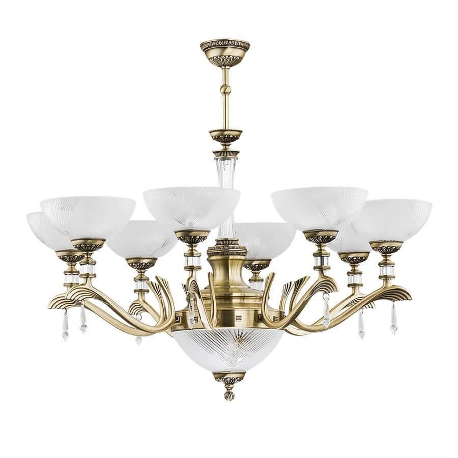 Подвесная люстра Kutek Farini FAR-ZW-8 (P) - это изысканное и элегантное освещение для гостиной в классическом стиле. Бренд Kutek из Польши представляет эту модель из коллекции Farini, которая станет прекрасным дополнением к интерьеру помещения.Люстра имеет 10 плафонов из стекла белого цвета, которые создают мягкое и приятное освещение. Основание из металла выполнено в бронзовом цвете, что придает изделию изысканный вид. Диаметр плафона составляет 880 мм, а высота - 700 мм, что делает эту люстру заметным элементом интерьера.
