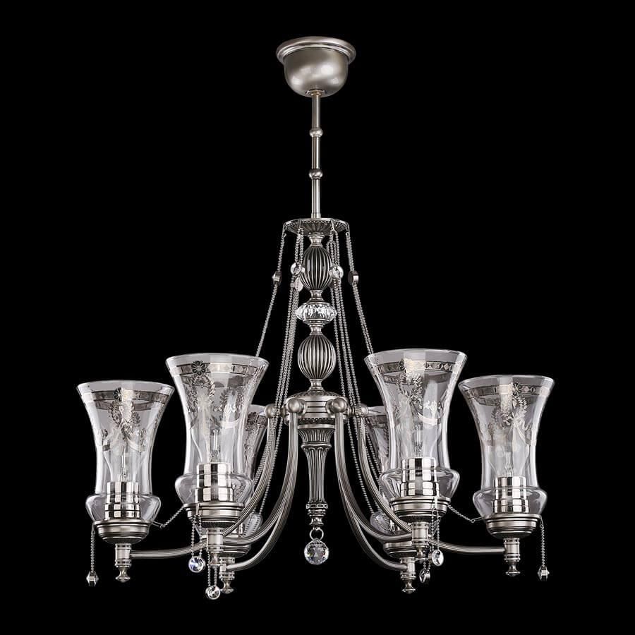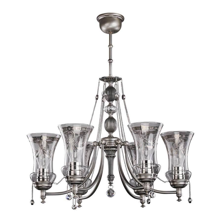 Подвесная люстра Kutek Nico NIC-ZW-6 (N) - это элегантное и изысканное освещение для гостиной, которое добавит шарма и стиля вашему интерьеру. Бренд Kutek из Польши представляет эту коллекцию Nico, сочетающую в себе классический стиль и функциональность.Люстра имеет 6 плафонов из матового никеля с дымчатым оттенком, выполненных из стекла в форме флористики. Основание из латуни также покрыто матовым никелем, что придает изделию изысканный вид. Диаметр плафона составляет 600 мм, а высота - 650 мм.