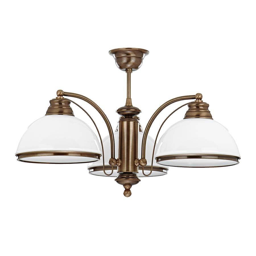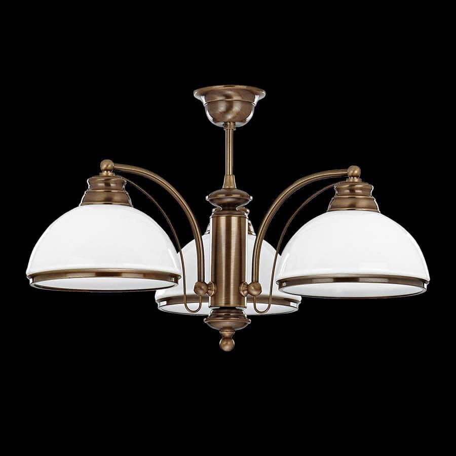 Подвесная люстра Kutek OBD OBD-ZW-3 (P) - это стильное и функциональное освещение для кухни, произведенное в Польше. Люстра из коллекции OBD имеет ретро стиль и выполнена из высококачественных материалов.Высота подвесной люстры составляет 540 мм, диаметр - 530 мм. Она оснащена тремя лампами с цоколем E27 и общей мощностью 120 Вт. Плафон и абажур изготовлены из стекла белого цвета, что придает освещению мягкий и приятный оттенок. Основание выполнено из латуни коричневого цвета, что придает люстре элегантный вид.
