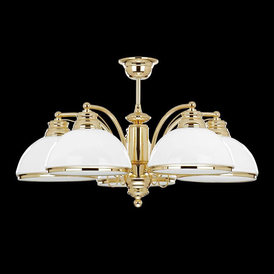 Подвесная люстра Kutek OBD OBD-ZW-5 (Z) - это изысканное освещение для гостиной, которое добавит шарма и элегантности вашему интерьеру. Бренд Kutek из Польши представляет эту модель с артикулом OBD-ZW-5(Z), которая станет прекрасным дополнением к классическому стилю помещения.Люстра имеет пять плафонов из стекла белого цвета, которые создают мягкое и приятное освещение. Основание из латуни с золотистым оттенком придает изделию изысканный вид. Диаметр плафона составляет 560 мм, а высота - 570 мм. Установка осуществляется на потолок.