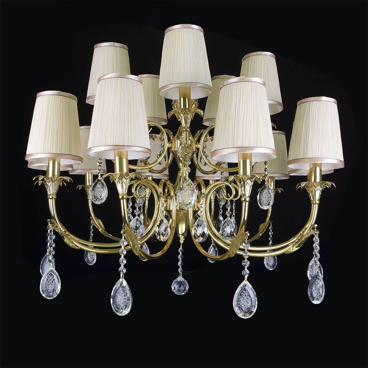 Подвесная люстра Lightstar Cappa 691152 - это изысканное освещение для больших залов, созданное в Италии с использованием высококачественных материалов. Люстра из коллекции Cappa имеет классический стиль и отличается элегантным дизайном.Эта подвесная люстра оснащена 15 лампами с цоколем E14 и общей мощностью 600 Вт. Высота люстры составляет 2040 мм, диаметр - 910 мм. Плафон и абажур выполнены из ткани бежевого цвета, что придает освещению теплоту и уют. Основание из металла имеет золотистый оттенок, что придает люстре изысканный вид.