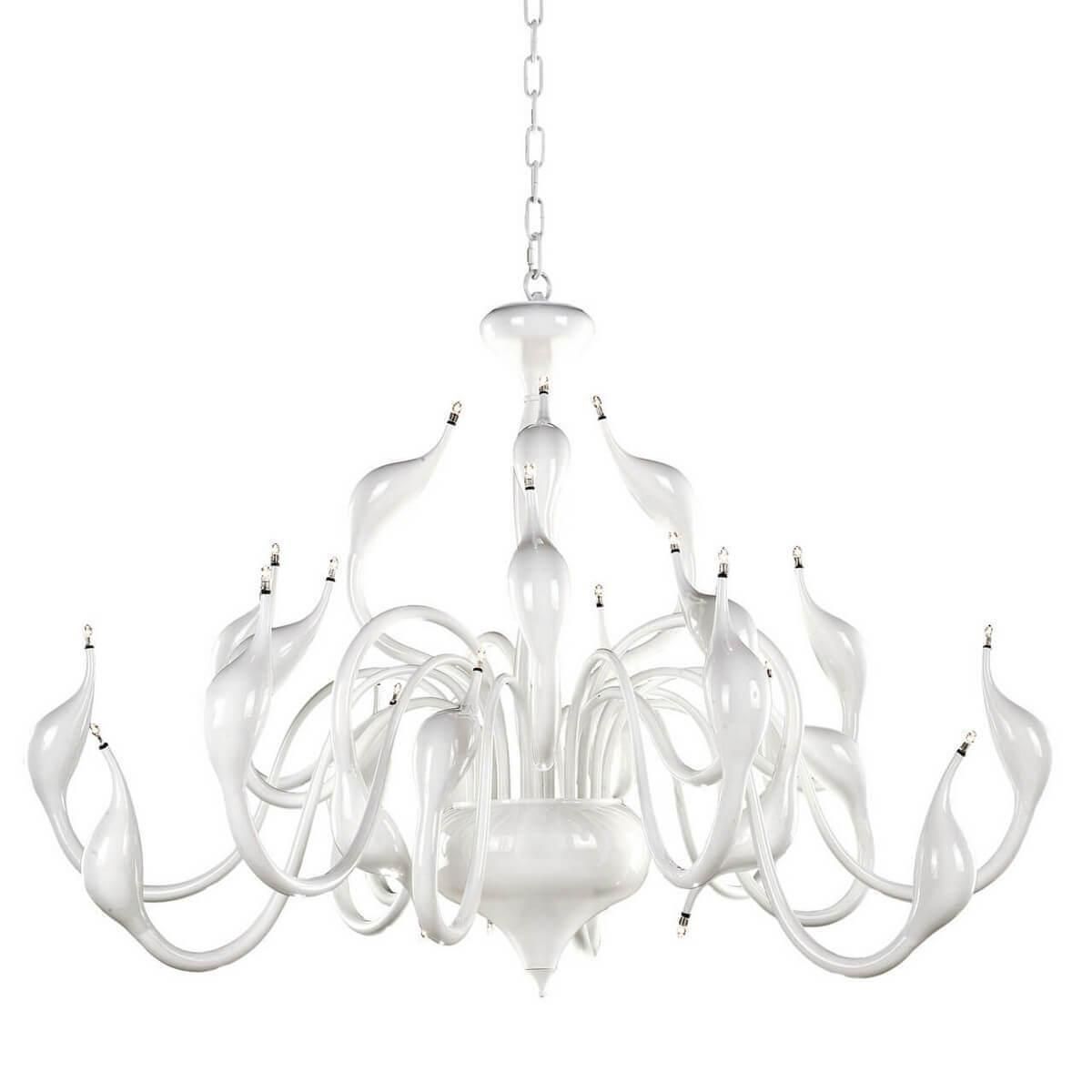 Стильный дизайн и белый цвет делают эту люстру универсальным элементом интерьера, который легко впишется в любой дизайн помещения. Высота подвеса 1500 мм и диаметр 1050 мм делают эту люстру великолепным акцентом в помещении.