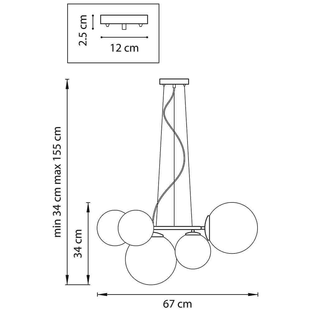 Плафон и абажур изготовлены из прочного стекла, обладающего высокой прозрачностью и прекрасным светорассеиванием. Диаметр плафона составляет 670 мм, а высота - 340 мм, что создает эффектное и эстетичное освещение.